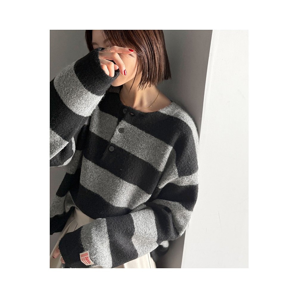 高智风格 紫涵圆领长袖 新款 女2025秋季 纹撞色拼接毛衣外套 针织开衫