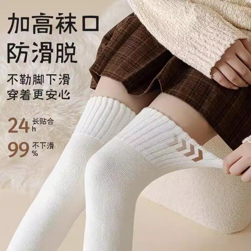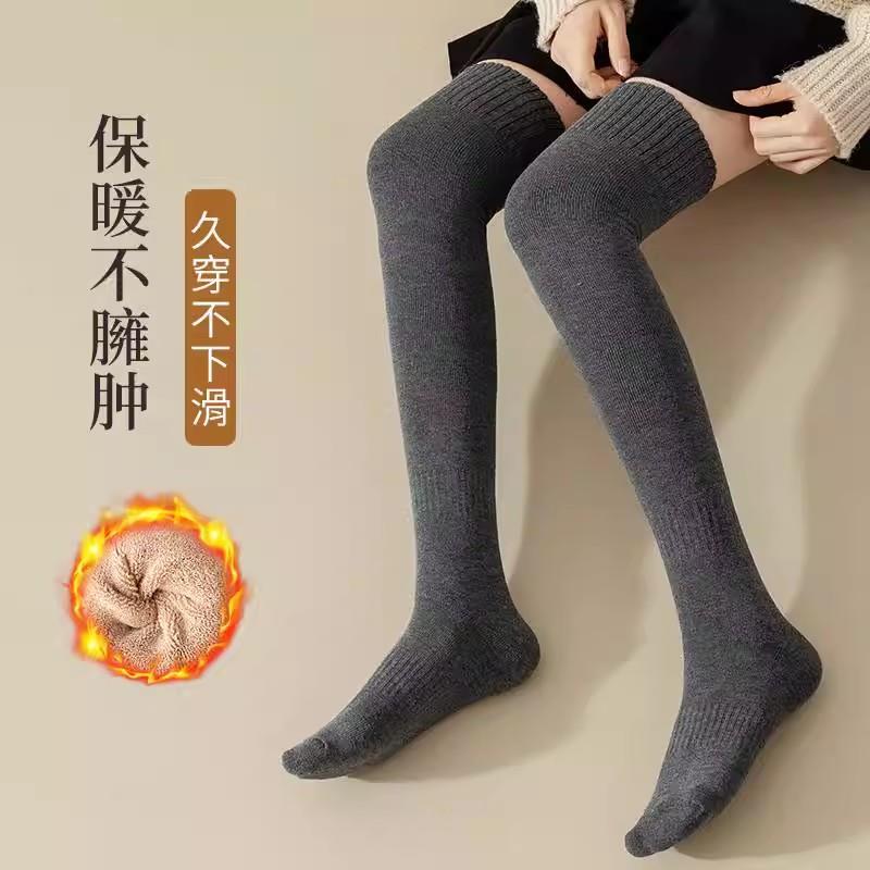 加长过膝长筒袜子女秋冬护膝保暖毛圈加绒加厚显瘦黑色高筒大腿袜