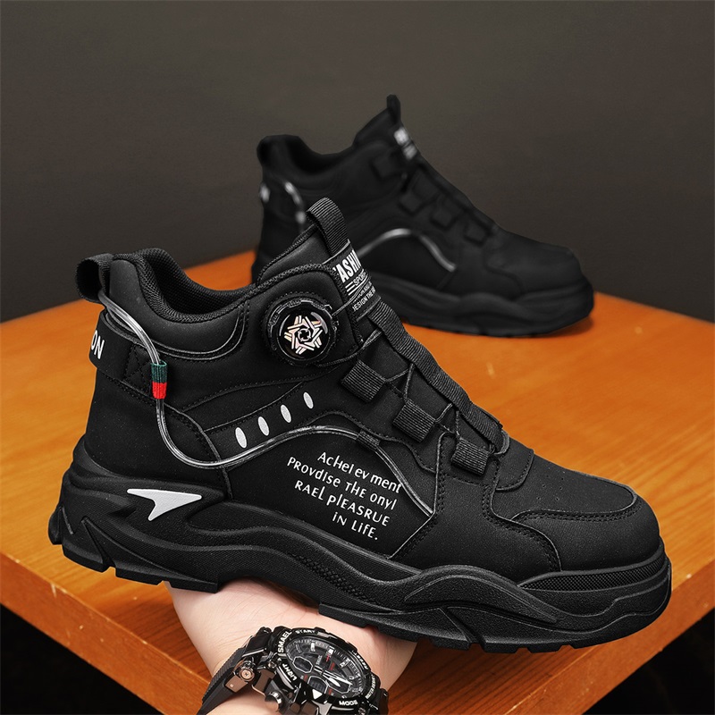运动鞋 高帮休闲鞋 秋冬新款 子学生厚底男鞋 皮面鞋 征服鸿星尔克板鞋