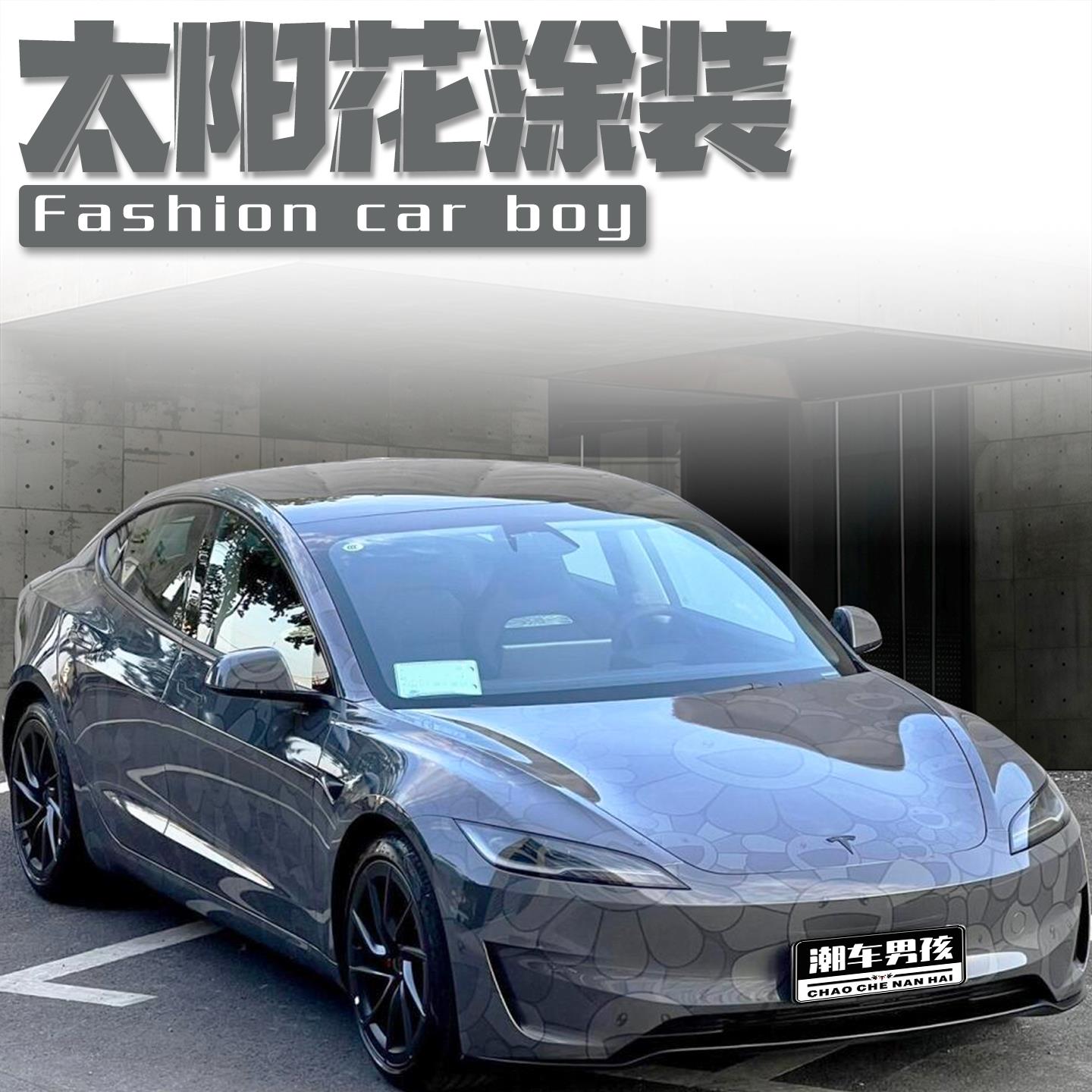定制 SU7全车膜村上隆繁花太阳花彩绘膜个性 适用于特斯拉model3