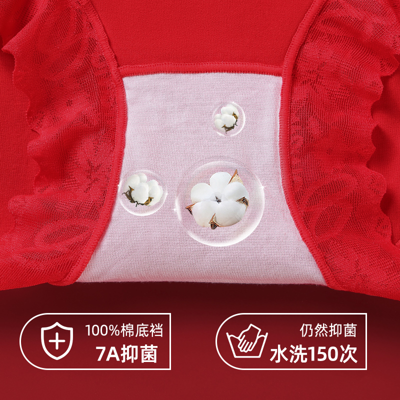 猫人内裤 头 女纯棉高腰收腹小平角红色2025本命年结婚女士三角短裤