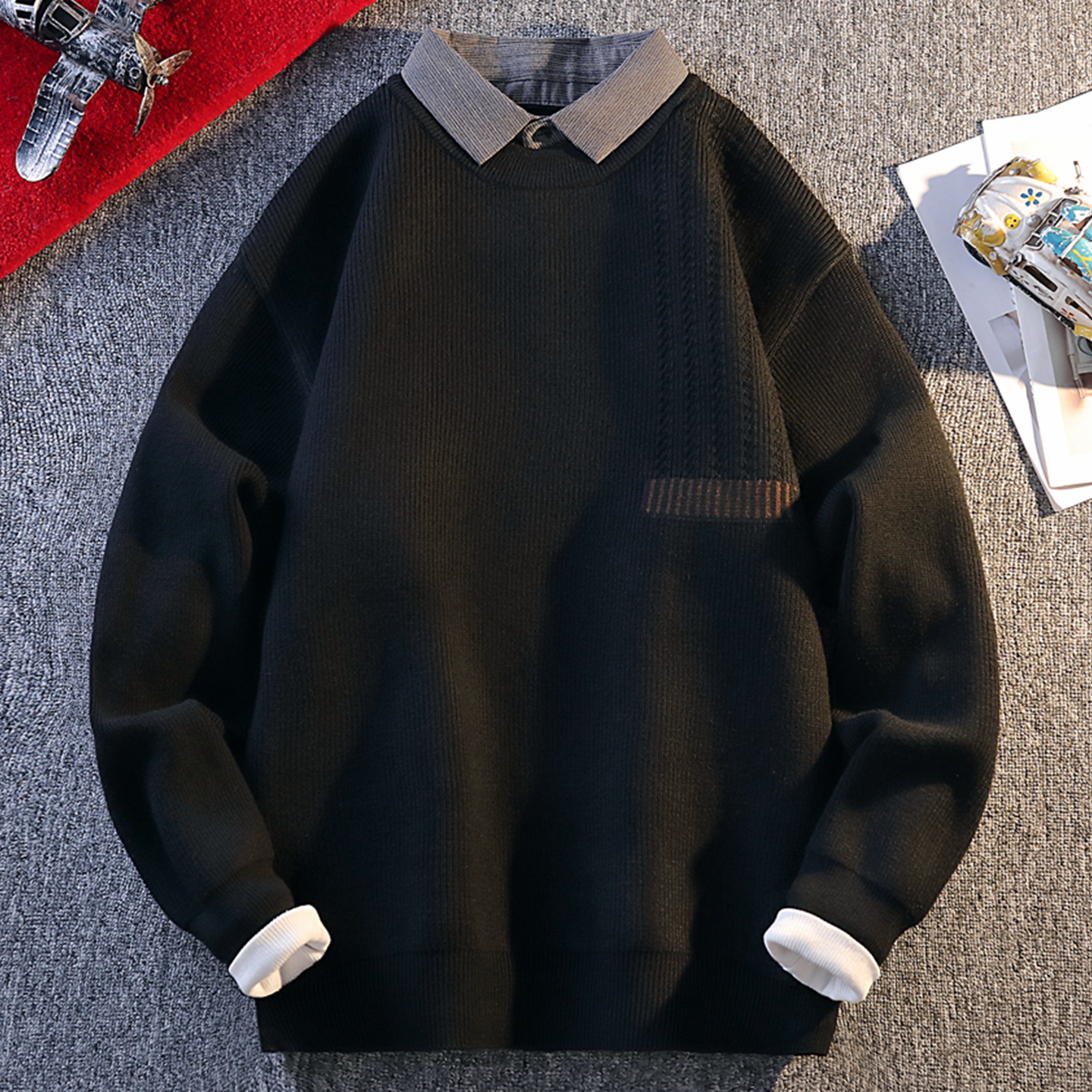 上衣春秋2025新款 打底针织衫 黑色毛衣女内搭 显瘦长袖 秋冬圆领修身