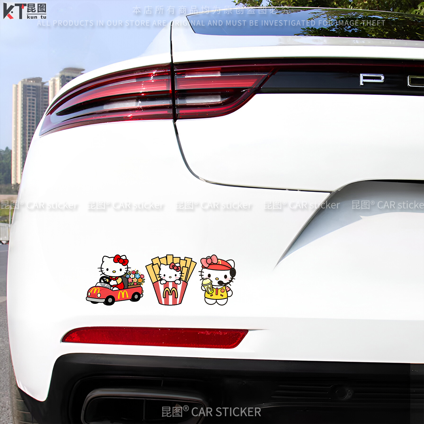 麦当劳KT猫卡通汽车贴纸车身个性 饰电动车笔记本行李箱贴画 创意装