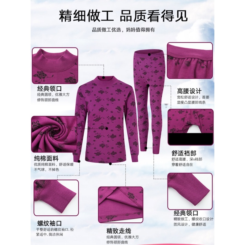 线衣线裤 保暖内衣全棉棉毛衫 冬季 薄款 秋衣秋裤 女款 女士纯棉套装