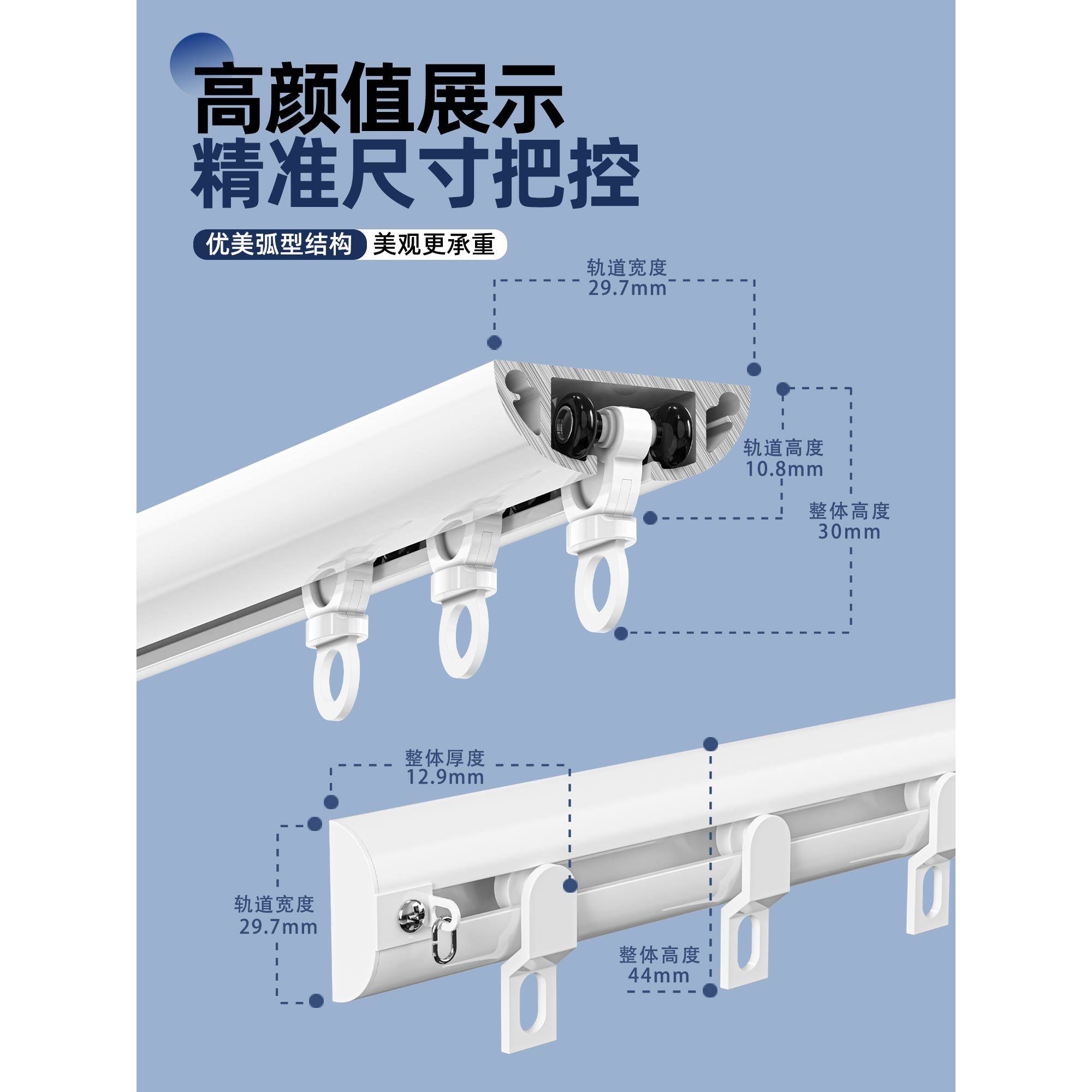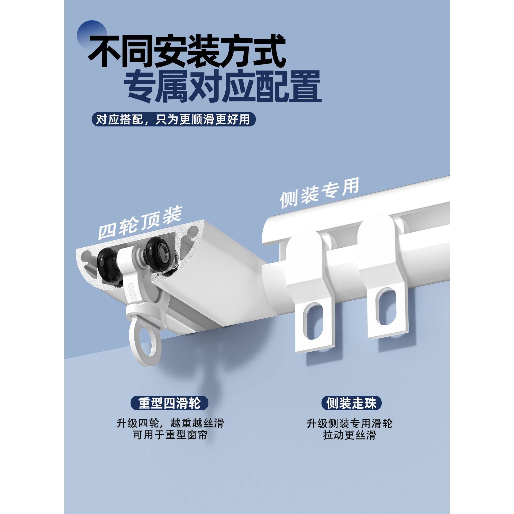 侧装 滑轨双轨静音超薄导轨 铝合金窗帘轨道免打孔隐形滑道单轨顶装