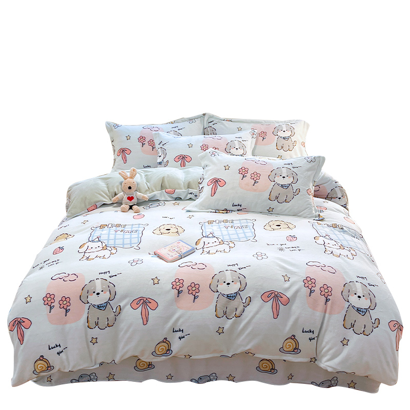无印良品全棉床单学生宿舍纯棉卡通儿童被套秋冬三件套床上用品