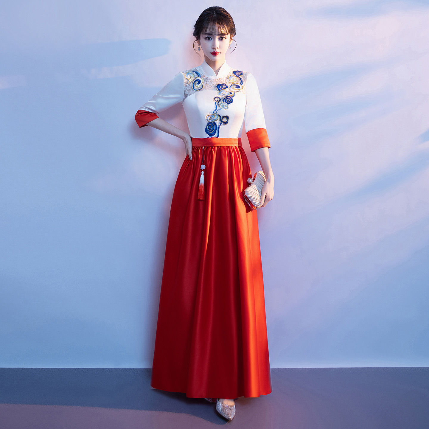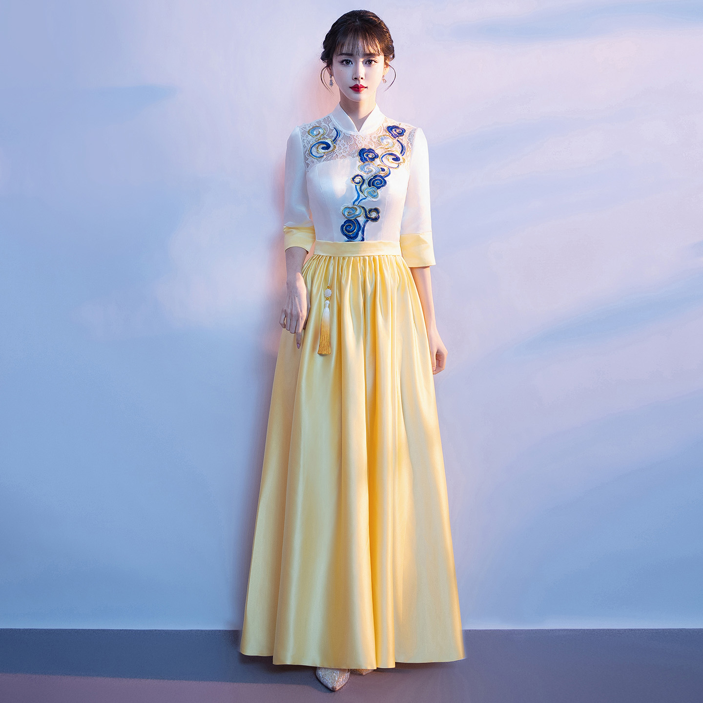 红歌大合唱比赛服装 诗歌朗诵成人晚礼服女长裙大合唱团主持表演服