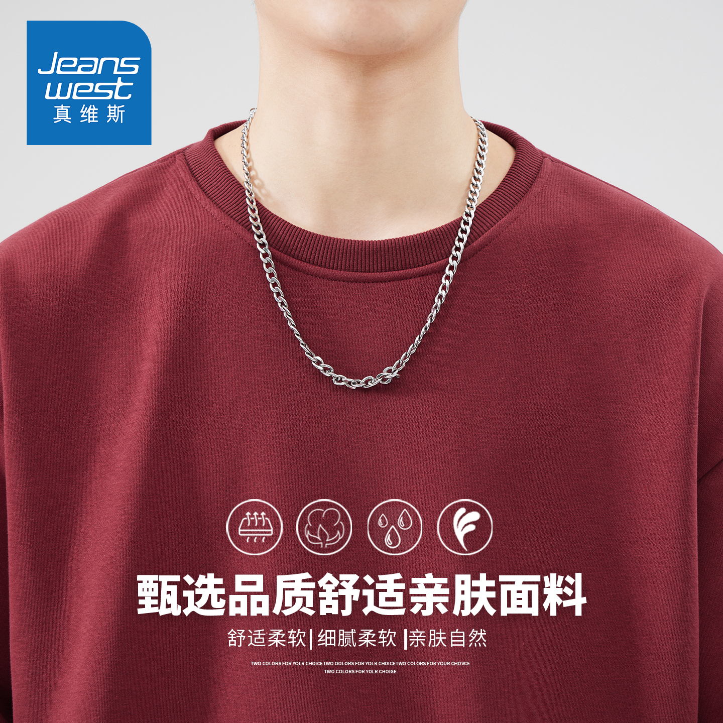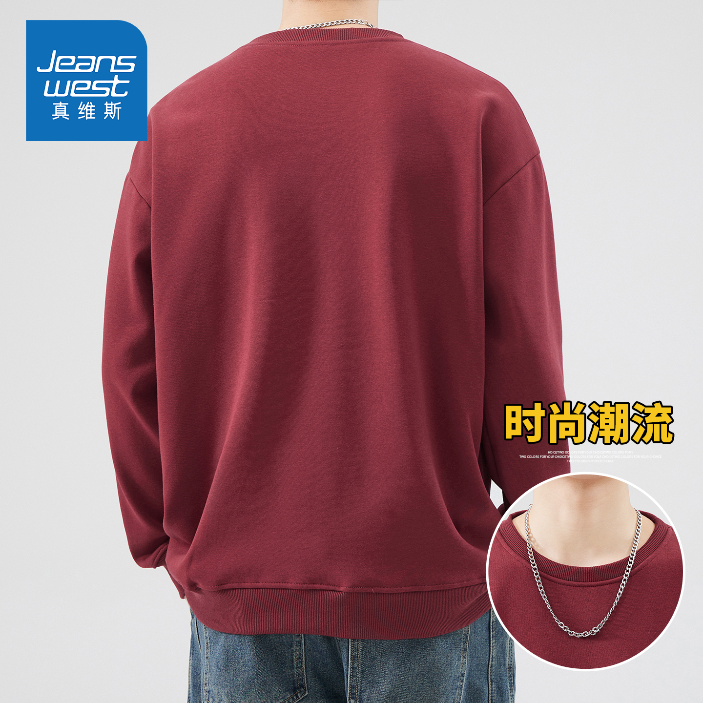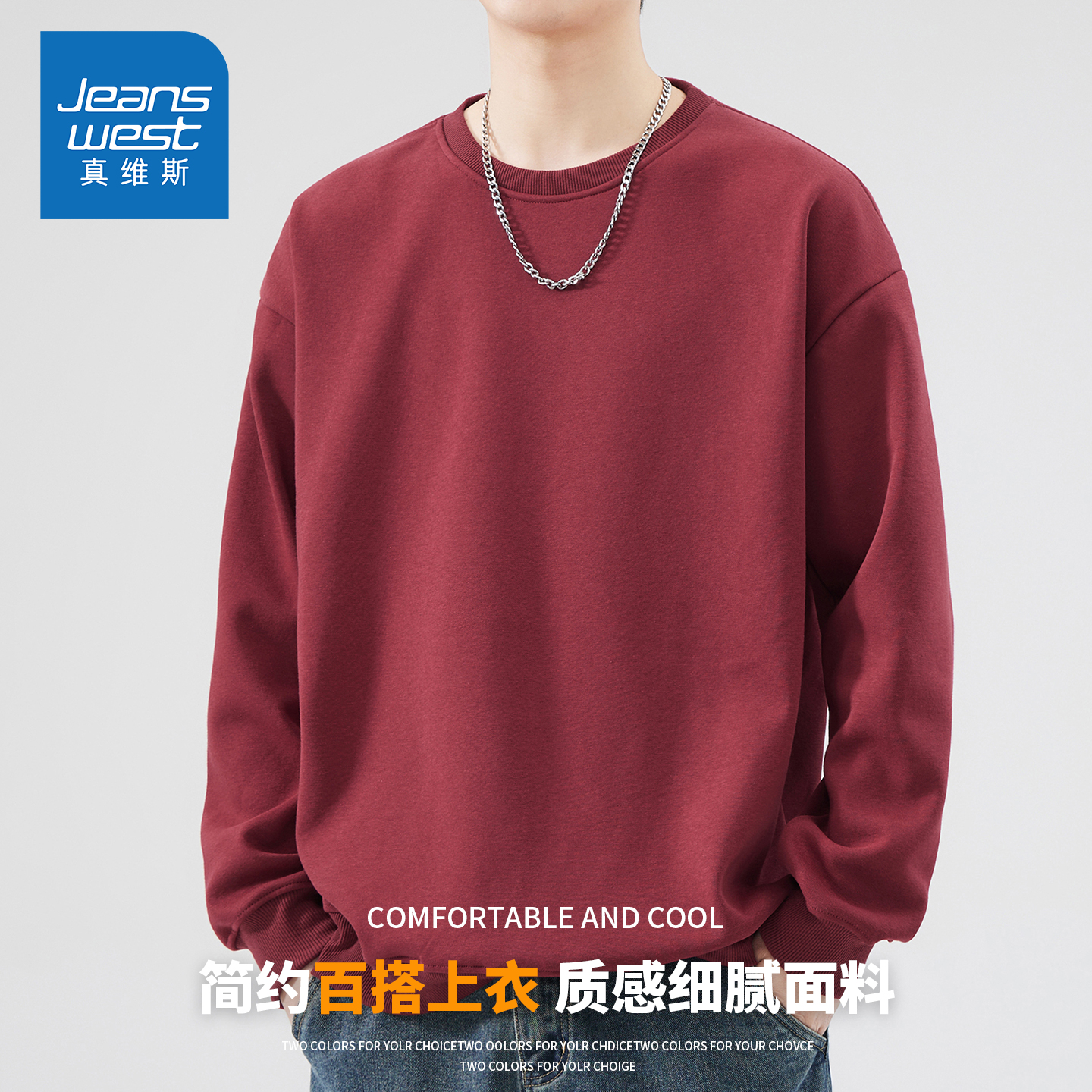 酒红潮流休闲上衣服T 宽松打底衫 KZH真维斯加绒长袖 卫衣男秋冬新款