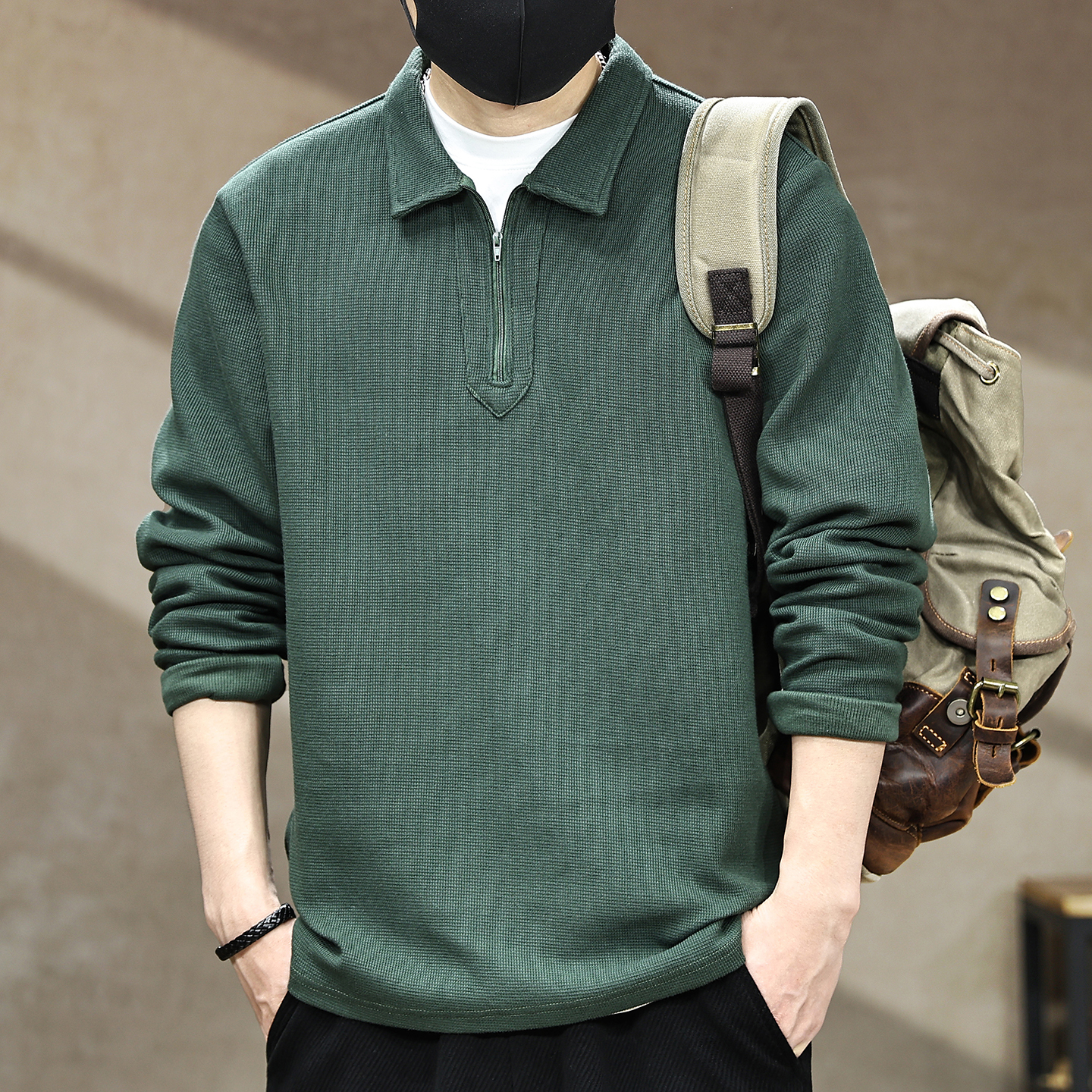 华夫格长袖 新款 POLO衫 男士 T恤男 美式 潮流宽松百搭长袖 复古春秋季