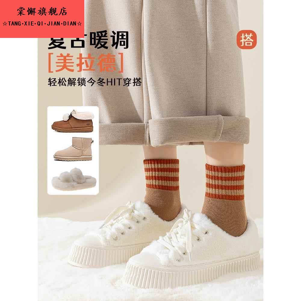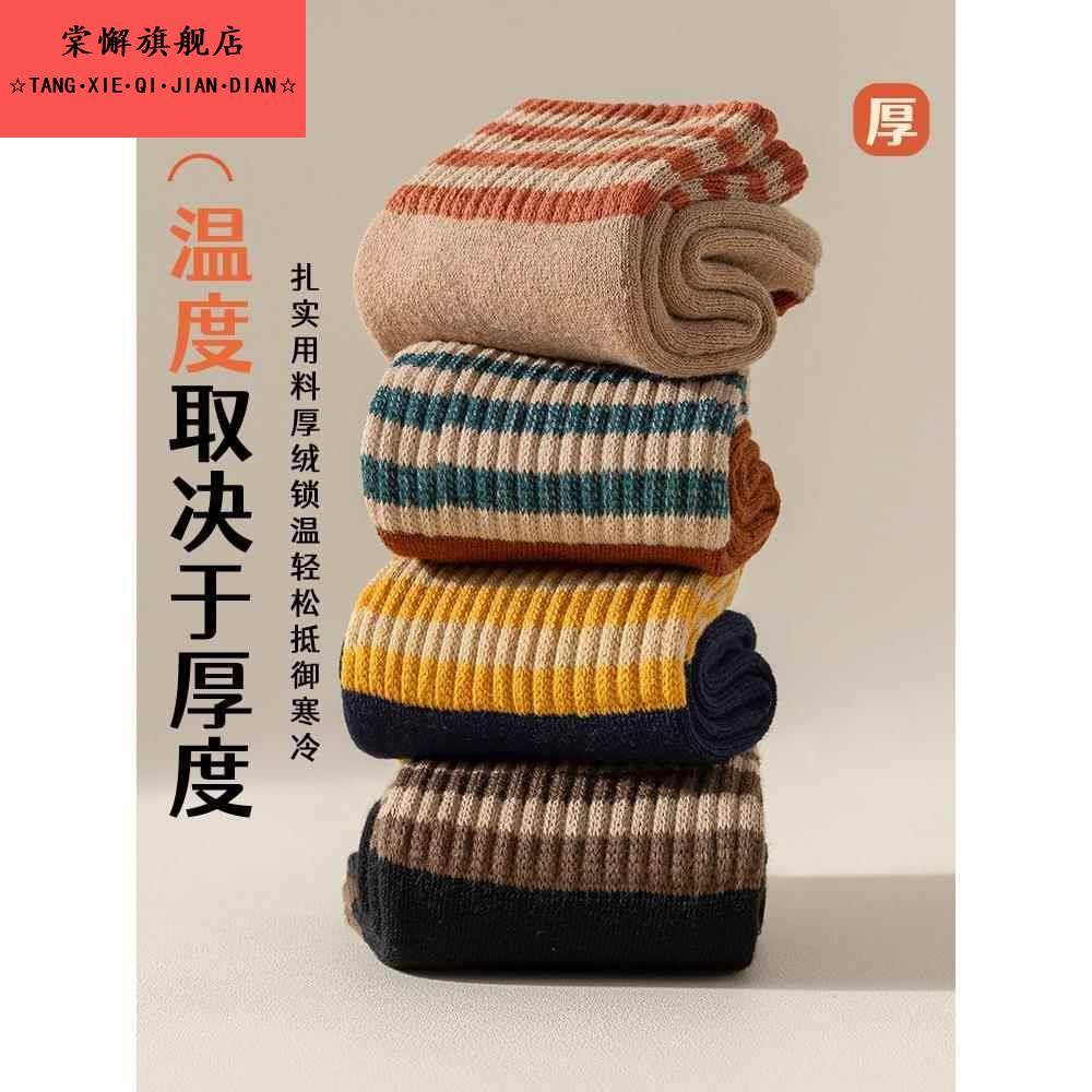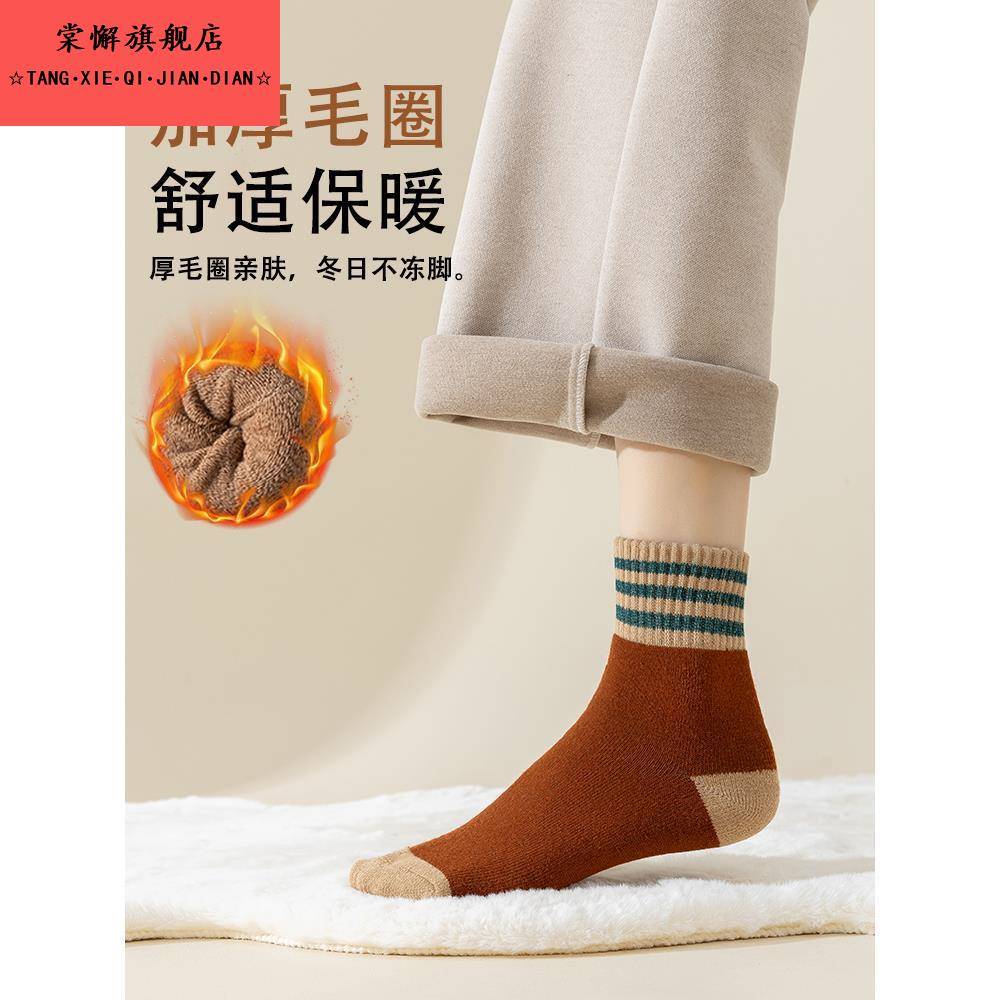 加绒加厚中筒毛巾袜子女士袜冬款 保暖毛圈百搭长袜复古防寒 秋冬季