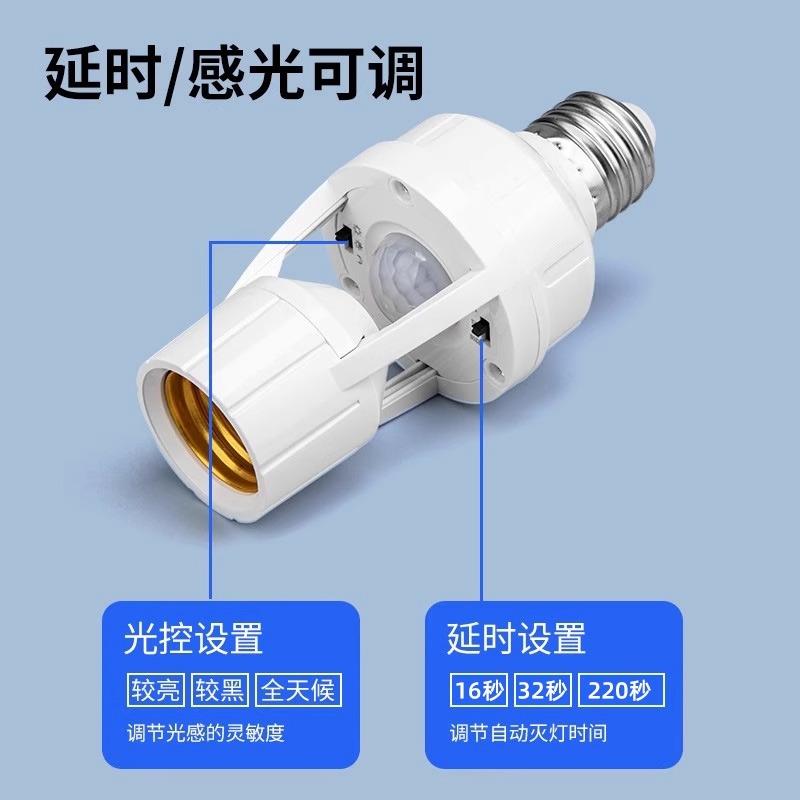 智能人体感应灯座过道走廊红外延迟感应灯头光控感应e27螺口灯座