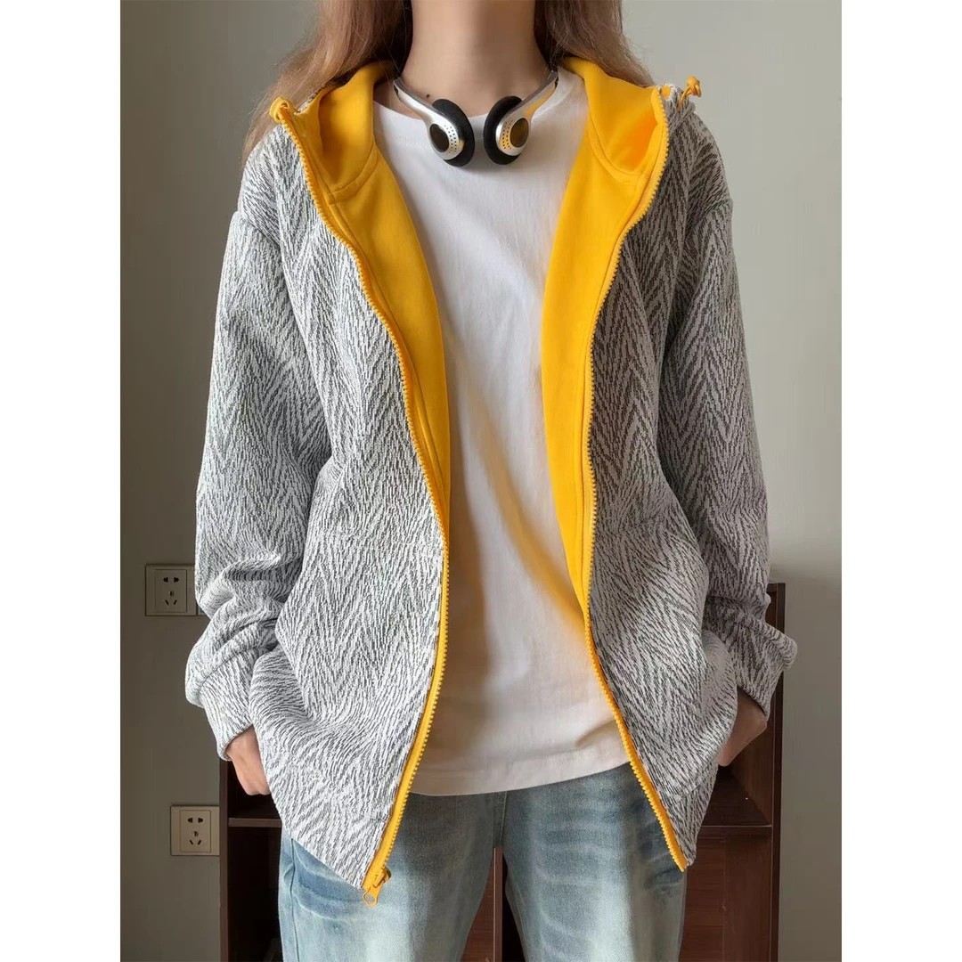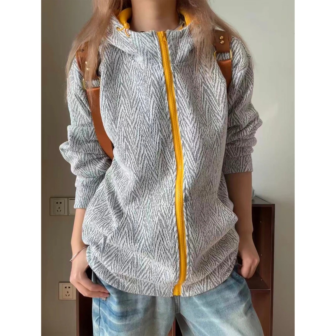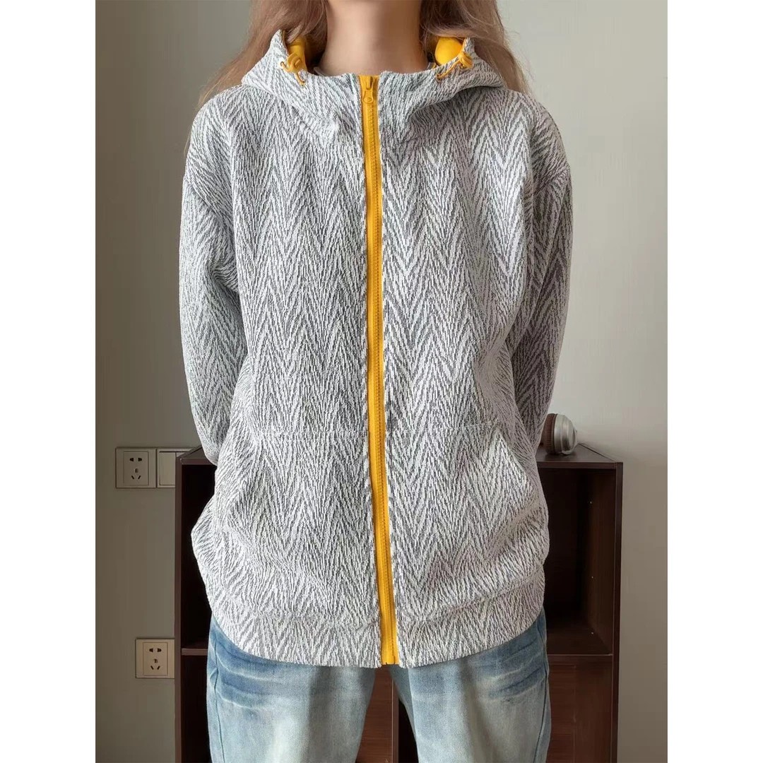 上衣高级感情侣外套 拼接撞色长袖 美式 复古人字纹连帽卫衣男秋冬季