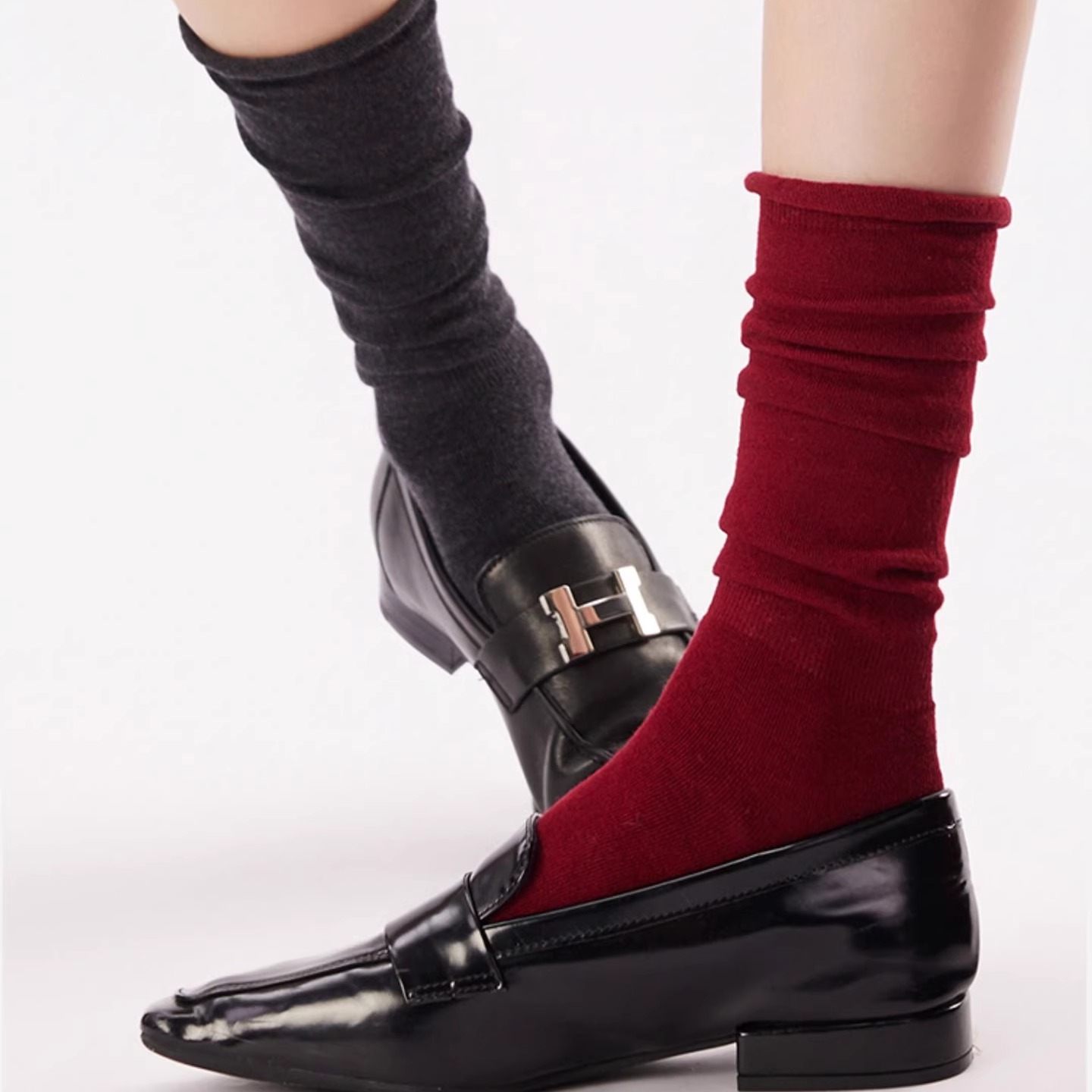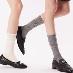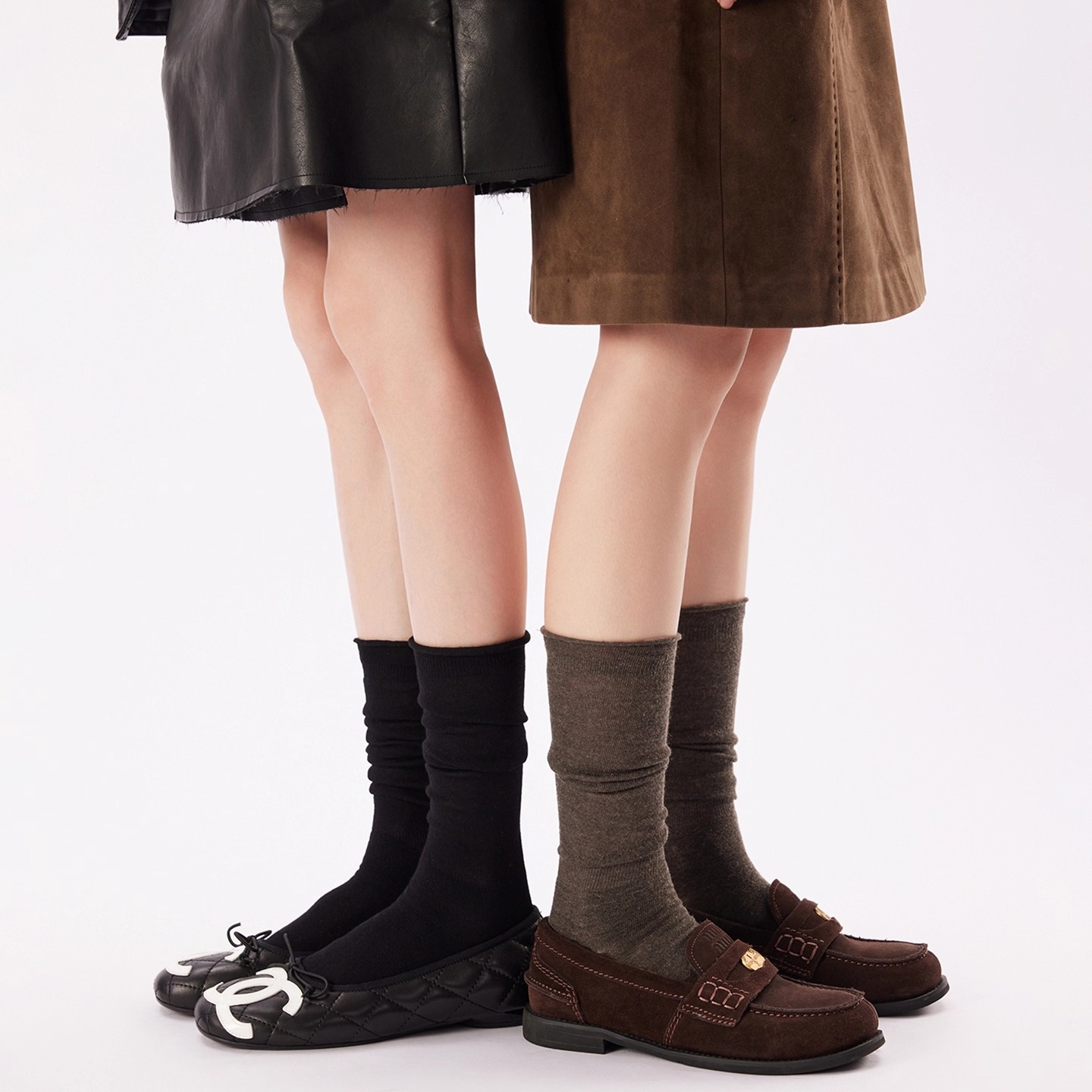 秋冬美拉德咖色袜子女长筒袜羊毛保暖卷边堆堆袜小腿袜配小皮鞋 新