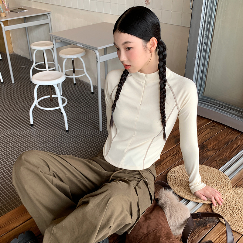 连帽卫衣打底衫 韩版 流行修身 上衣T恤女2025秋新款 拉链半开领长袖