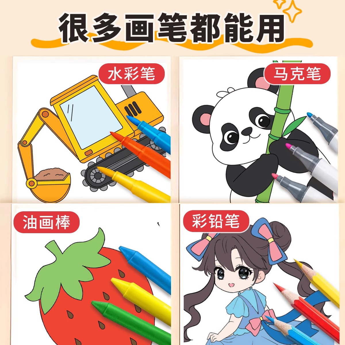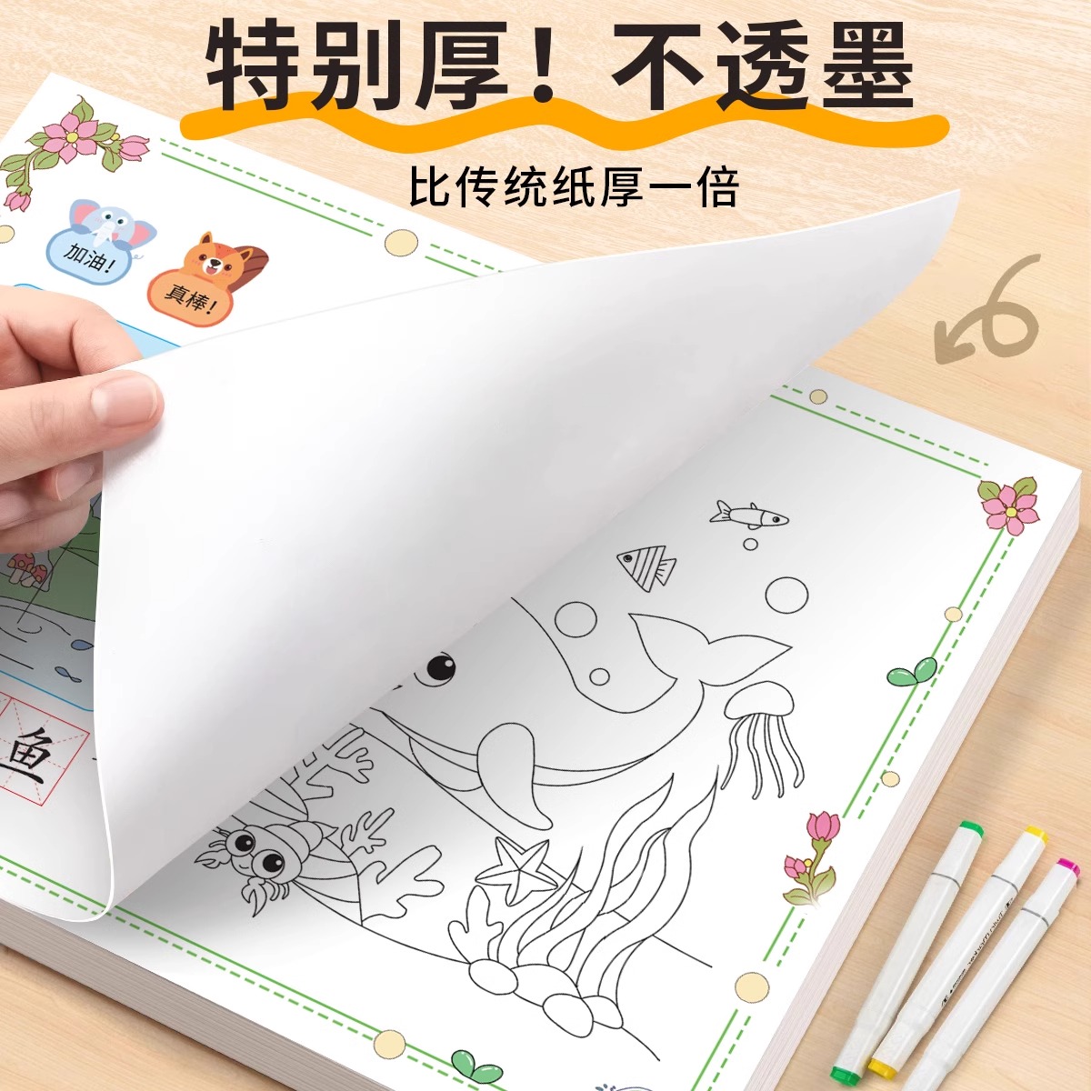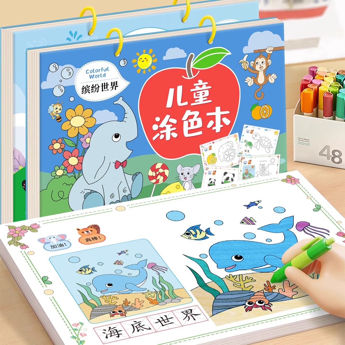 画画儿童涂色3 6岁2幼儿园专用填色马克笔图画本涂色描绘本涂鸦书