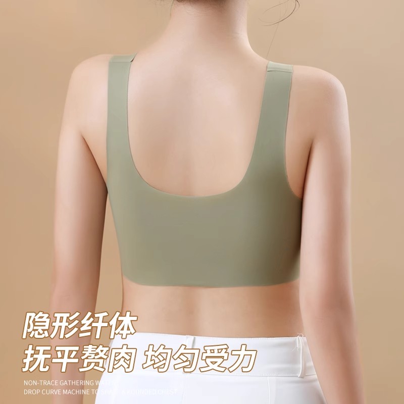 防走光隐形 文胸薄款 无痕固定杯运动内衣女大胸显小聚拢大码 背心式