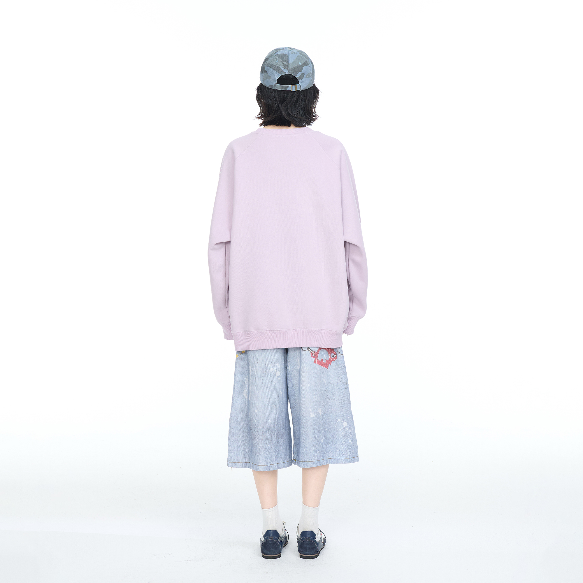 YEP春秋新款 街头套头上衣 浅紫色卡通印花圆领卫衣女宽松外套美式