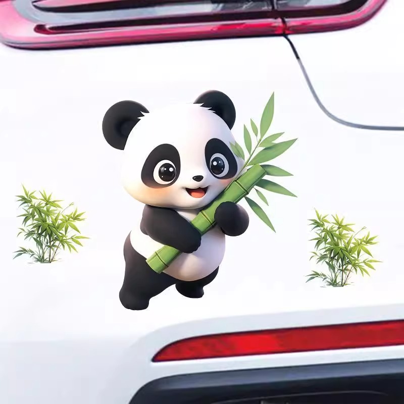 可爱竹子熊猫车贴卡通贴画汽车贴纸装 划痕遮挡贴电动车摩托 饰个性