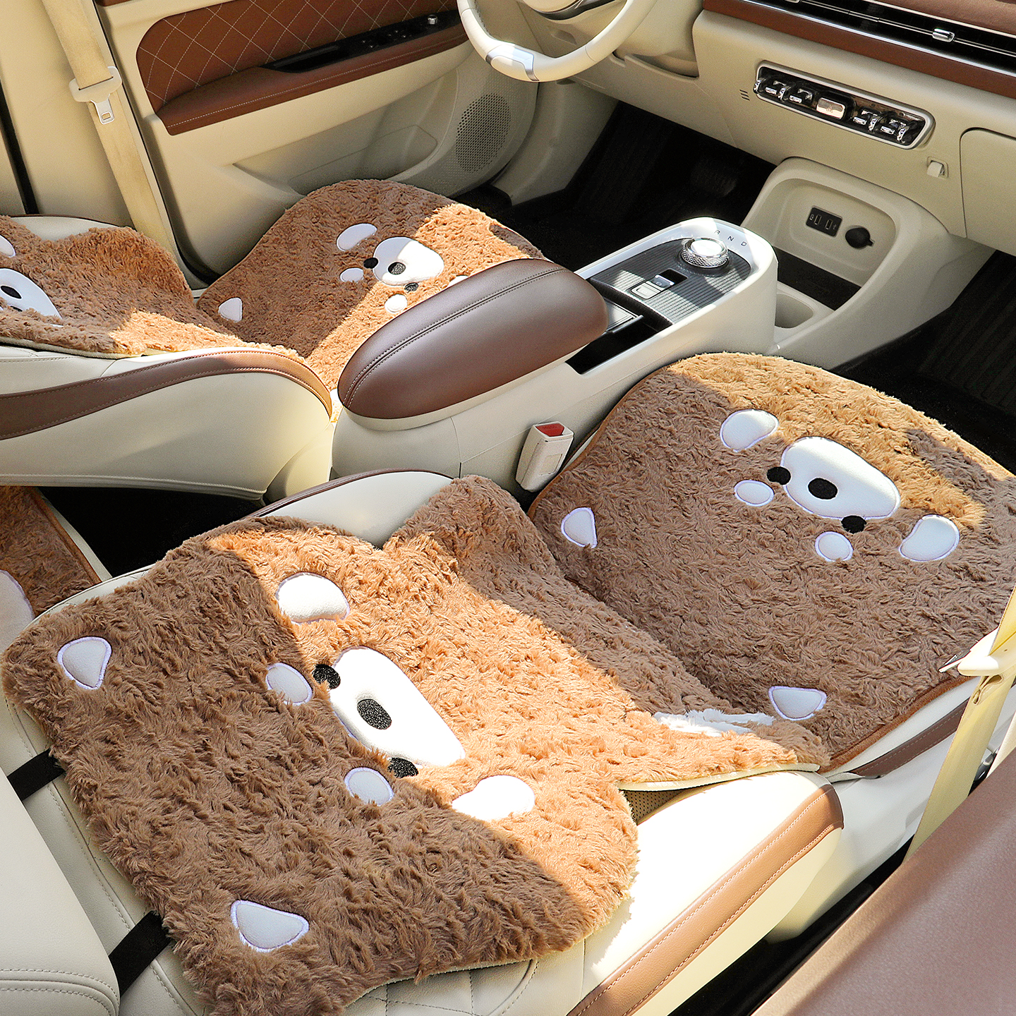 汽车坐垫冬季 毛绒保暖防滑可爱卡通女士高级感车用座椅垫半包座垫