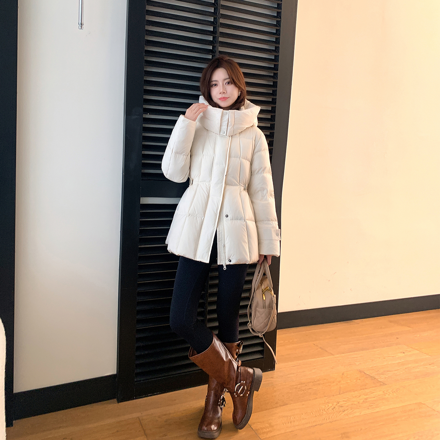 奶油泡芙针织拼接毛衣羽绒棉服女2025秋冬新款 韩国高级感保暖外套
