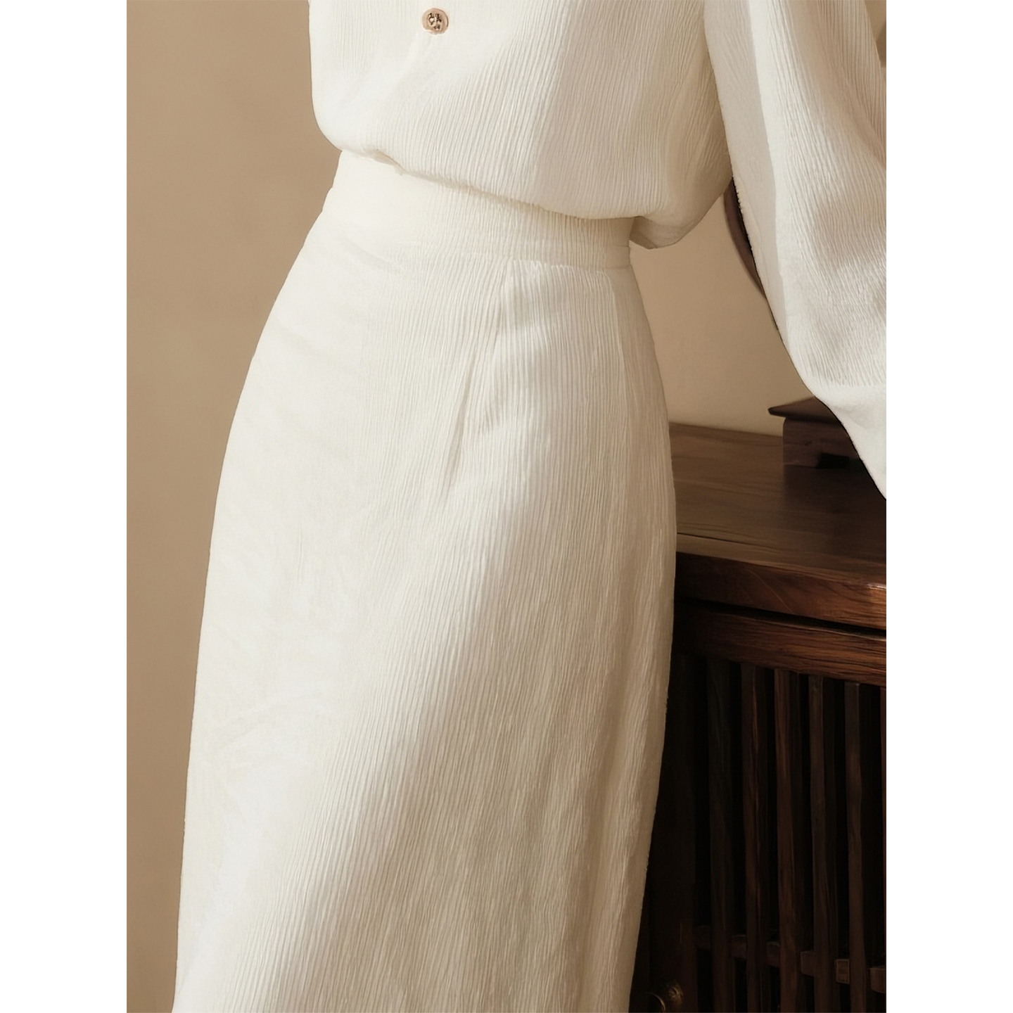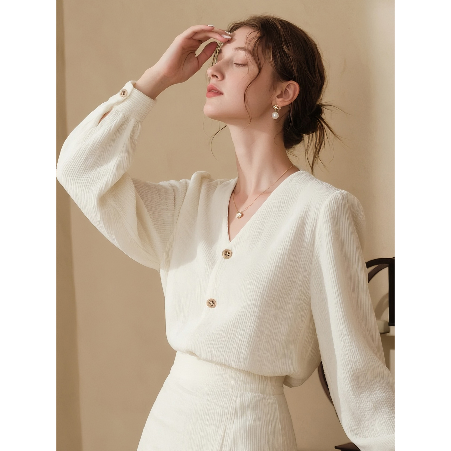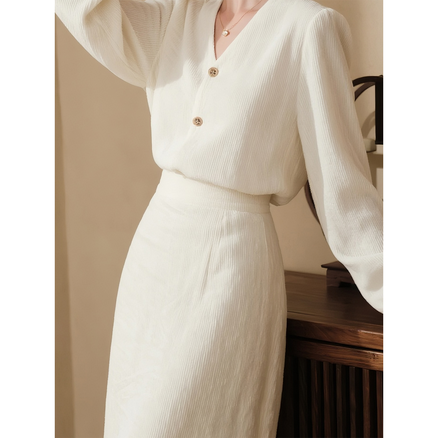 长袖 白色灯芯绒V领衬衫 法式 女2025秋冬新款 裙子 半身裙套装
