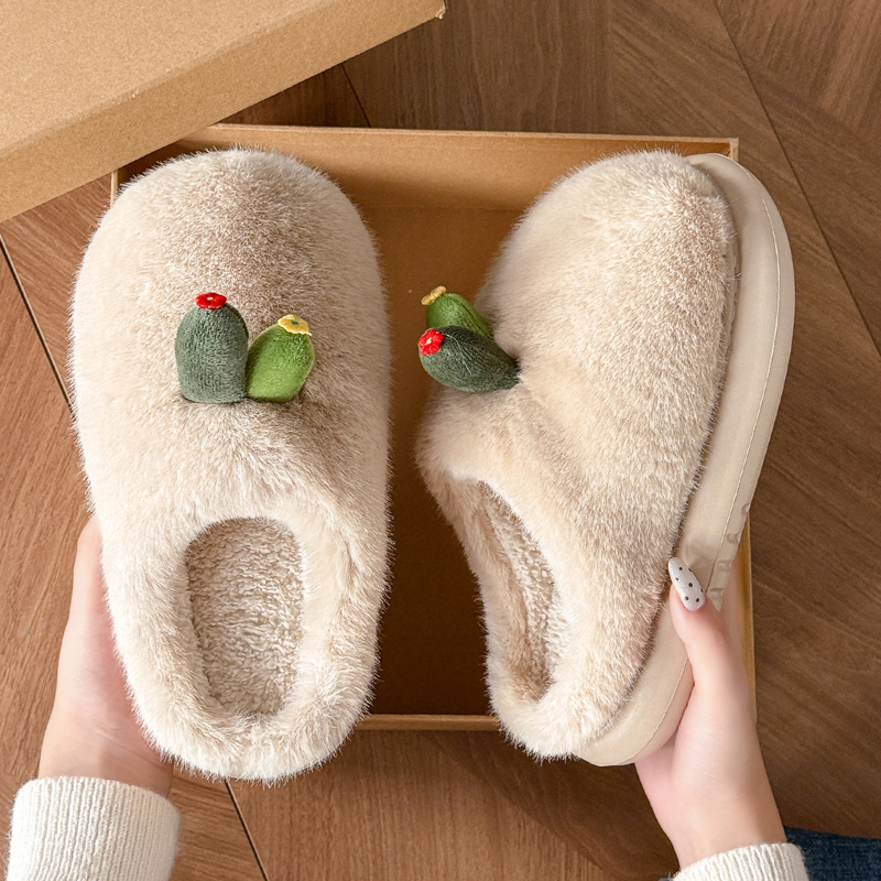 毛毛绒室内家居保暖鞋 厚底防滑2025新款 子居家 女士秋冬季 棉拖鞋