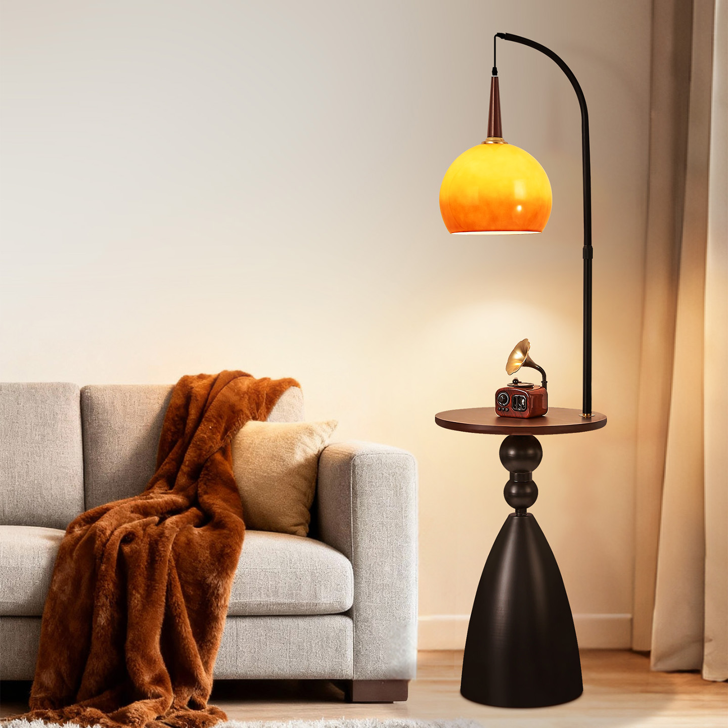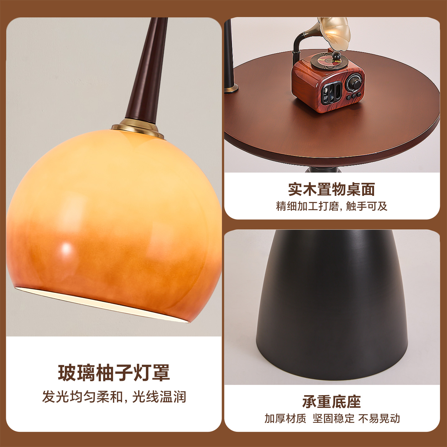 台灯 饰灯高级感卧室床头柜一体立式 中古风落地灯法式 复古置物架装