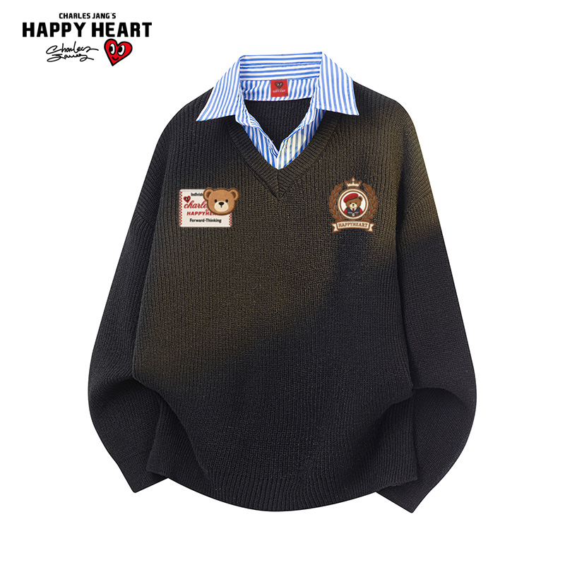 含羊毛加绒加厚 假两件衬衫 罗蒙男士 2025冬季 领毛衣 翻领针织衫