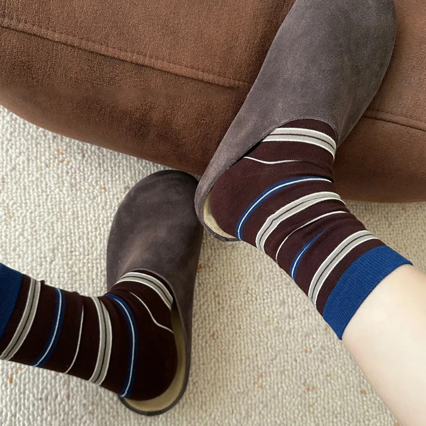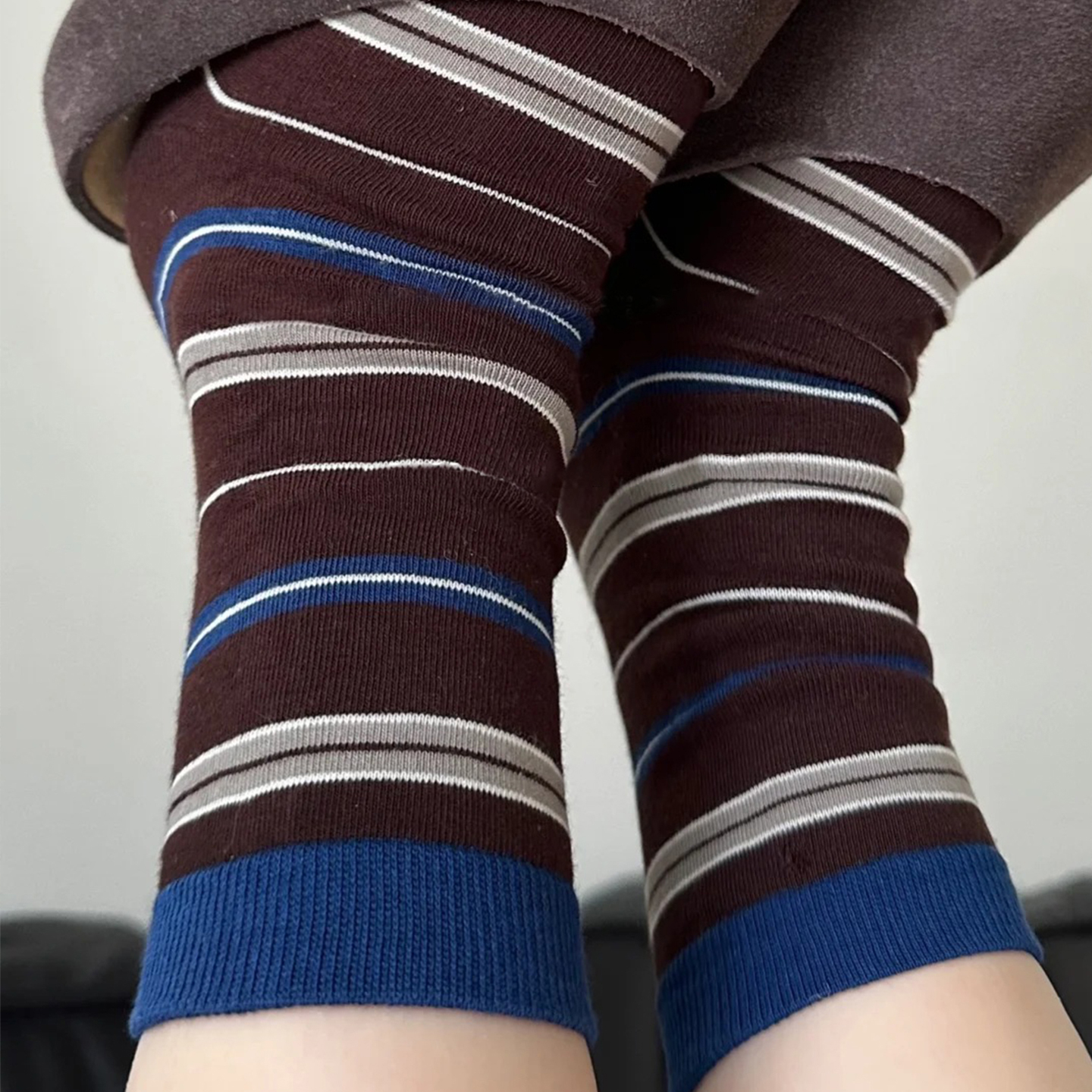 条纹袜子女中筒袜勃肯鞋 搭配袜子咖色堆堆袜女秋美拉德袜子波点袜