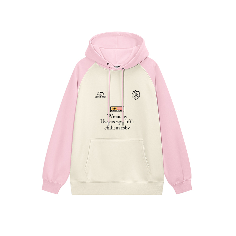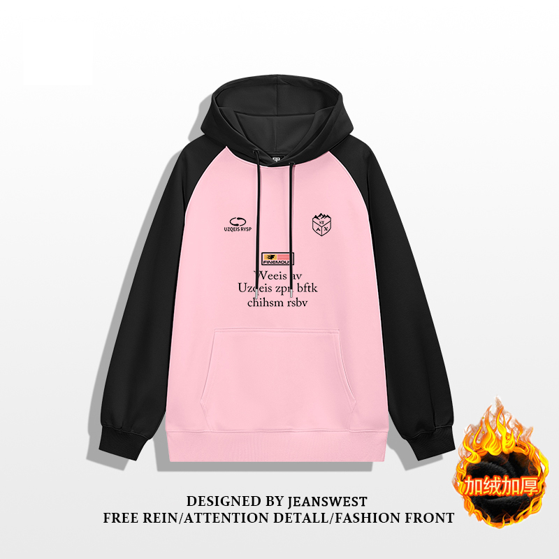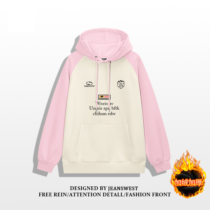 印花上衣 新品 G2真维斯情侣宽松加绒连帽插肩袖 拼色卫衣2025冬季