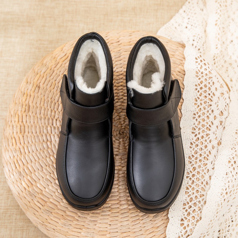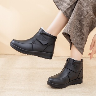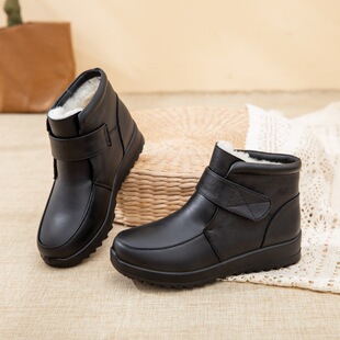 羊毛短靴女中老年平底防滑靴 保暖真皮加绒皮鞋 冬季 妈妈靴老人棉鞋