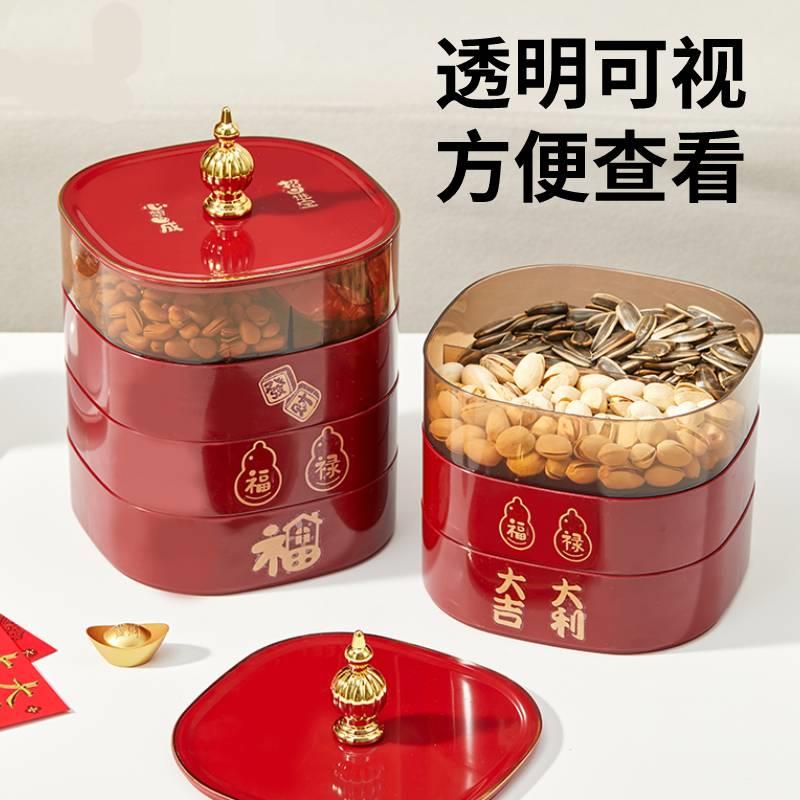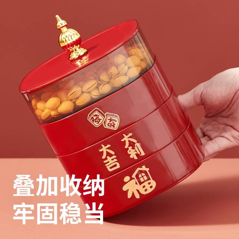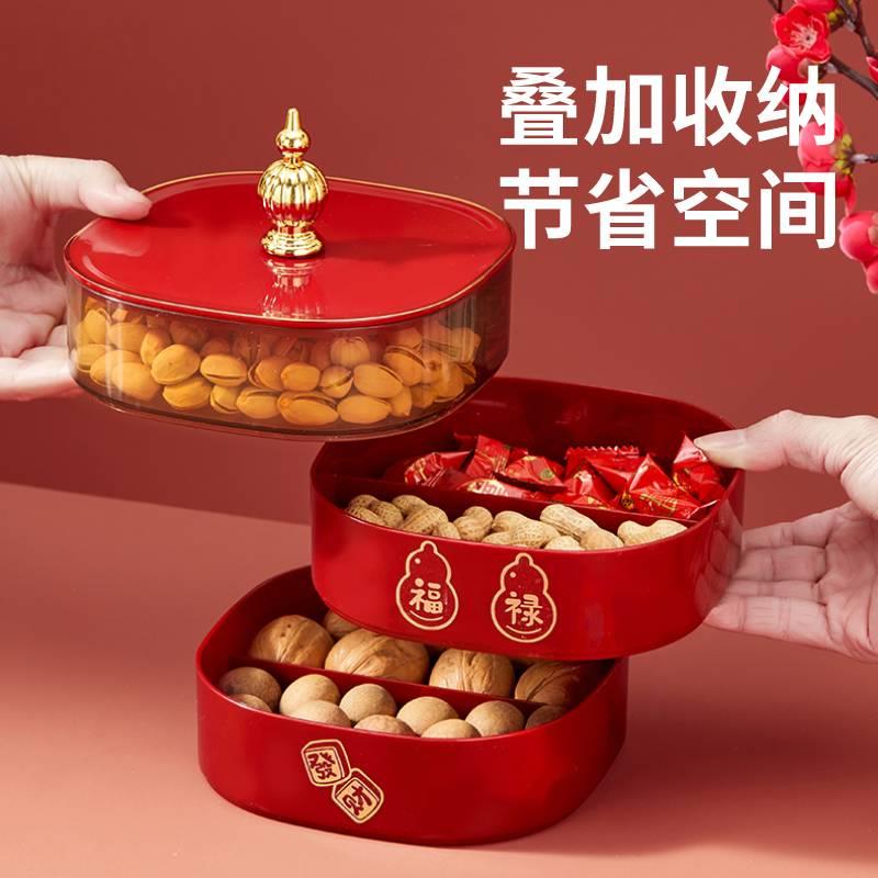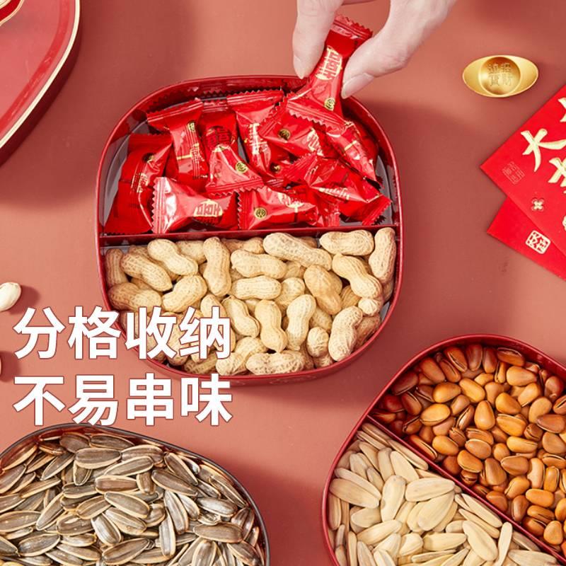 干果盘糖果盒新年客厅摆盘果盘坚果盘瓜子盒多层喜庆收纳盒带盖16