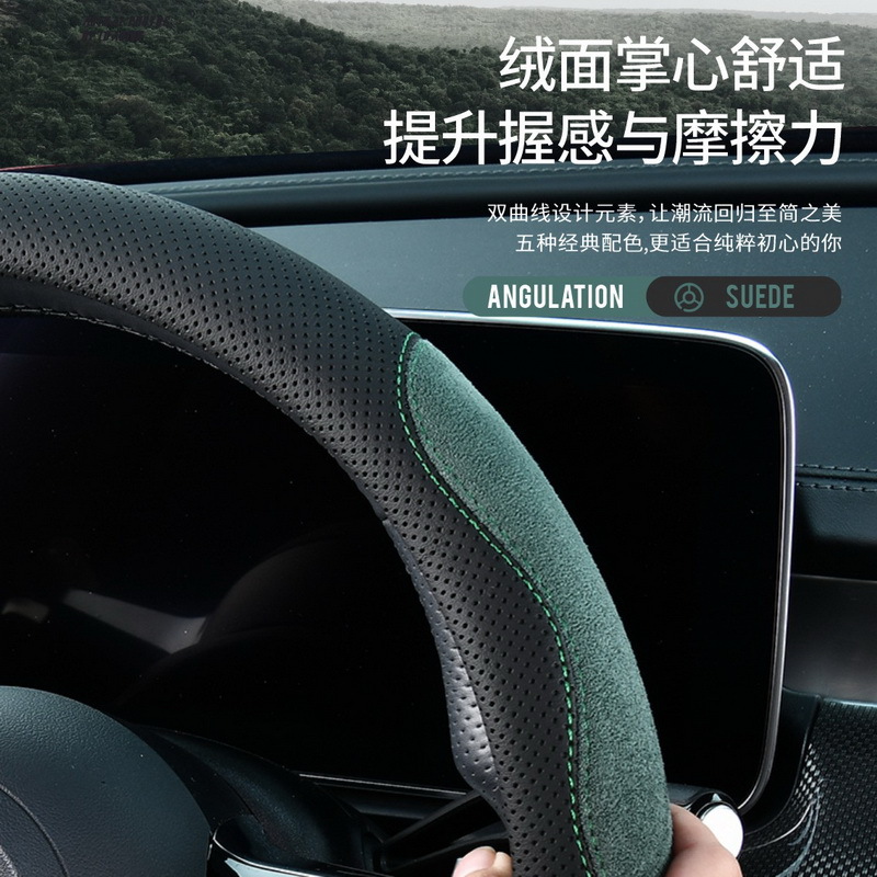 汽车方向盘套翻毛皮男麂皮绒女麂皮防滑透气吸汗四季 通用型车把套