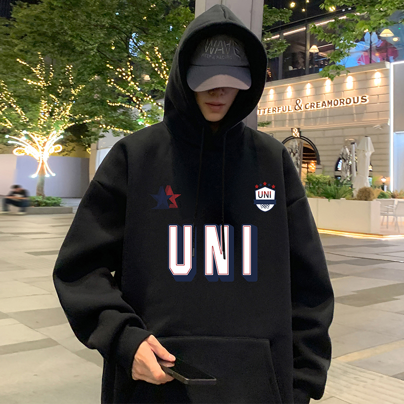 帽衫 拼接小logo印花插肩袖 美式 情侣加绒连帽卫衣 Achock官方店