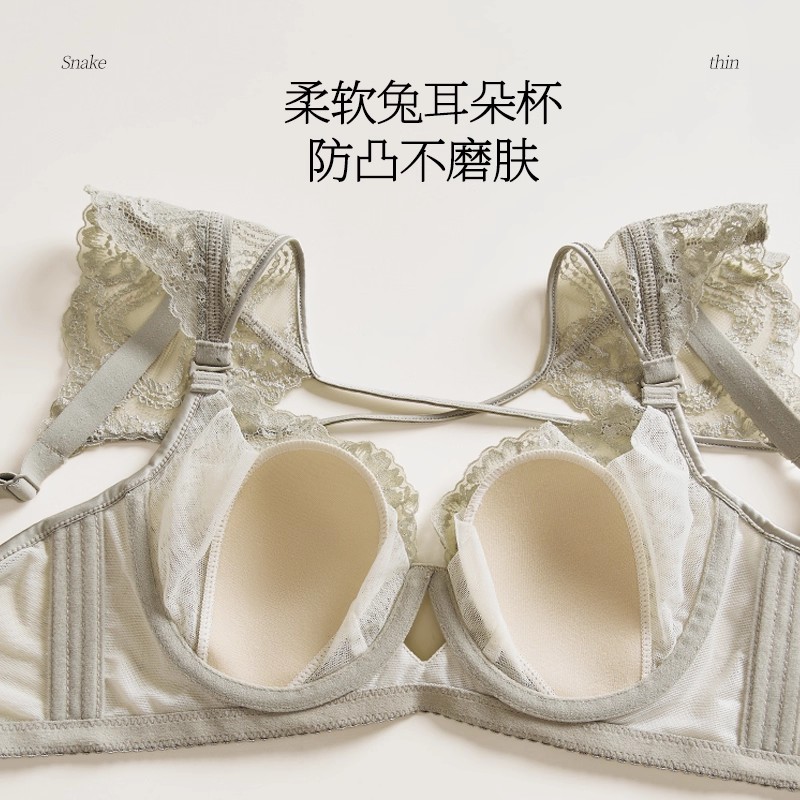 红色蕾丝内衣套装 性感纯欲文胸薄 女结婚纱新娘大胸显小胸聚拢法式