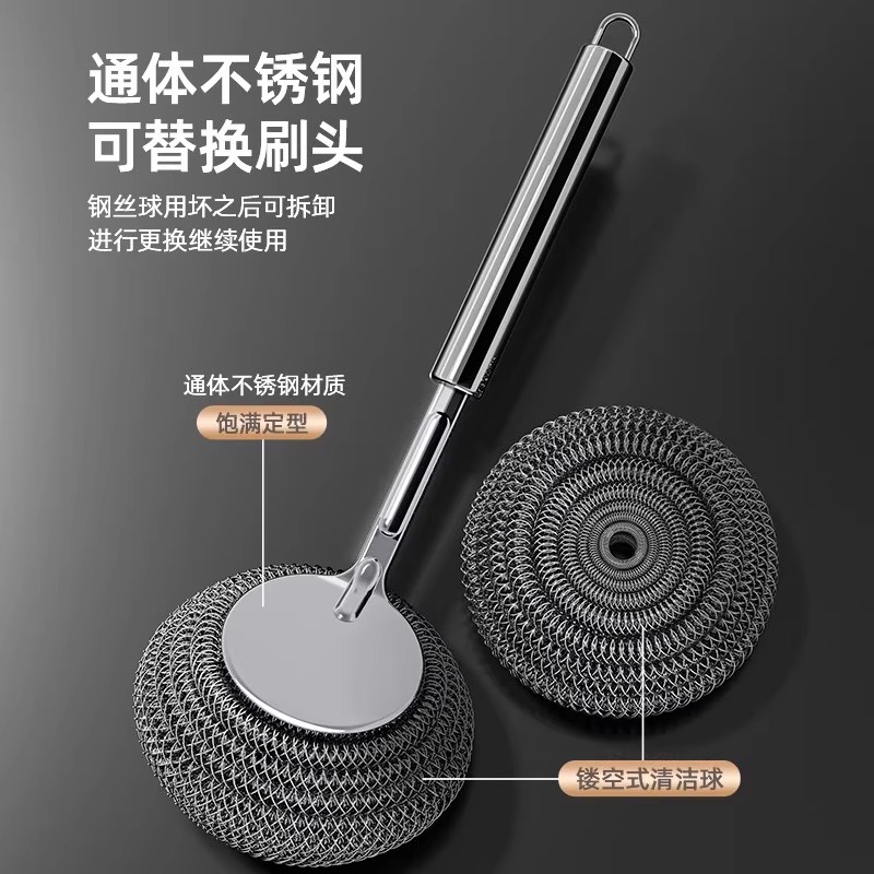 不锈钢锅刷厨房专用洗锅钢丝球刷长柄洗碗刷锅清洁刷子神器不掉丝