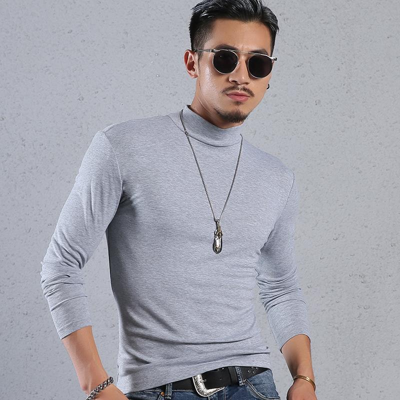 男士 韩版 保暖长袖 大尺码 潮流T1016u T恤半高领色套头打底衫 秋冬季