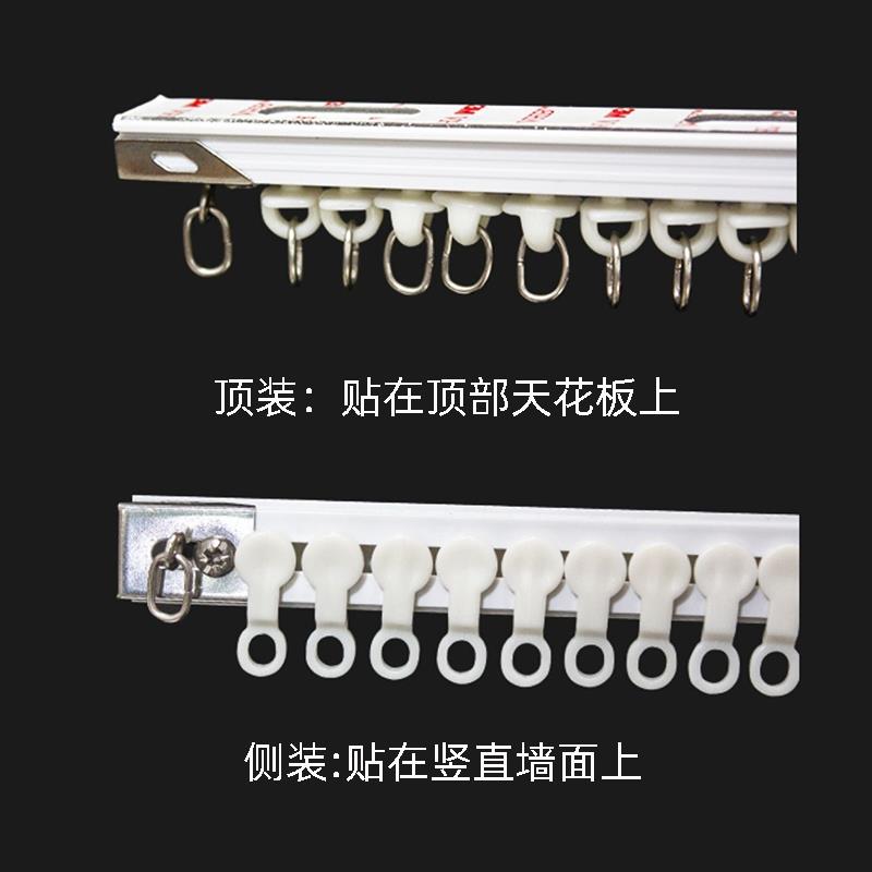 窗帘免打孔粘贴轨道超薄静音飘窗阳台自粘滑轨顶装 窗帘杆滑道 侧装