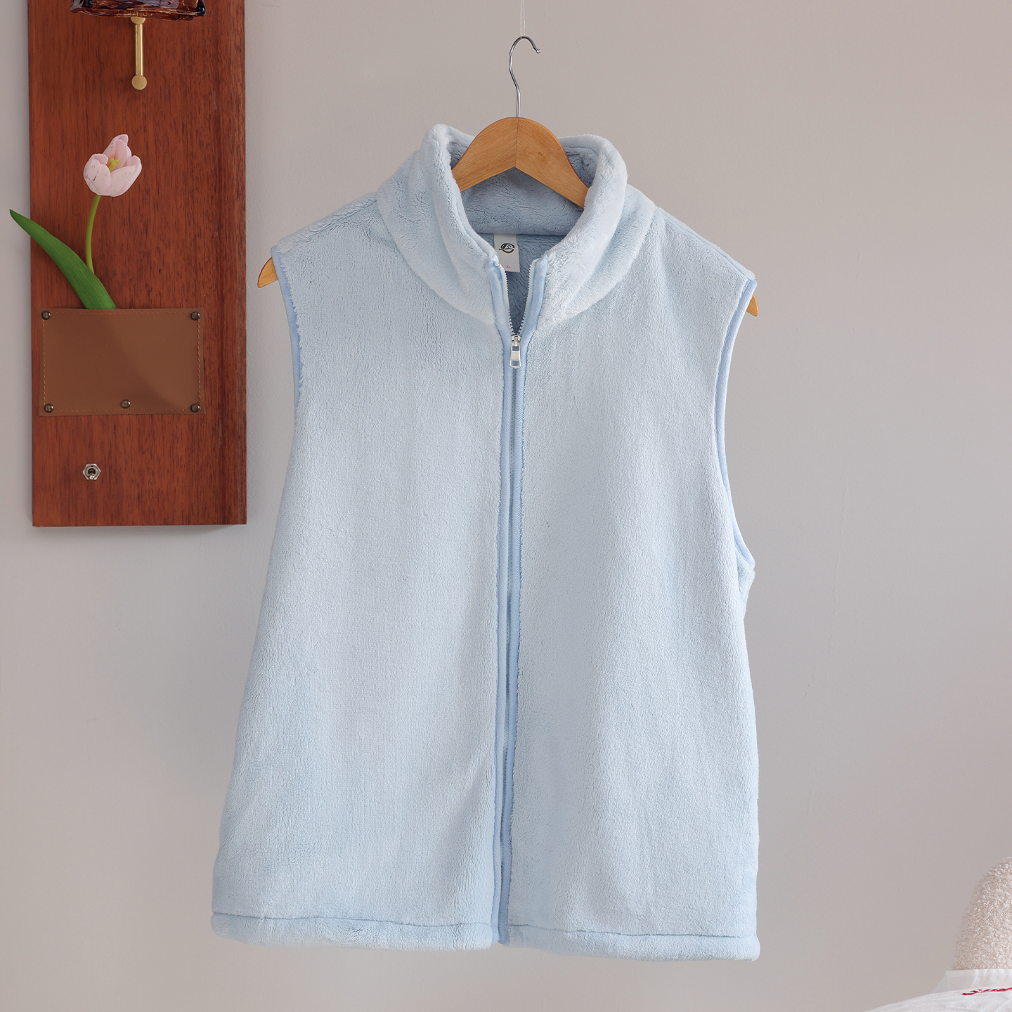 女士冬季 睡衣马甲保暖背心坎肩家居服单件上衣 三层加厚珊瑚绒无袖