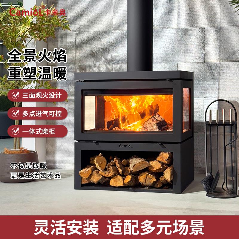 饰柜仿大理石仿真木柴火焰电子取暖器壁挂 装 轻法式 实木壁炉架美式