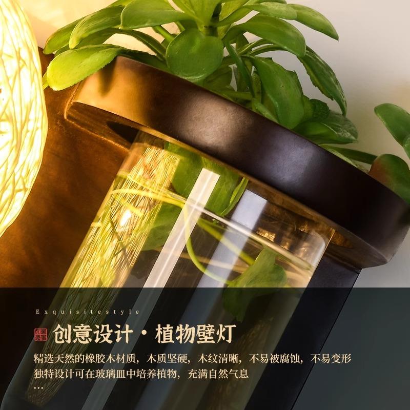 新中式 饰原木壁灯 实木卧室床头灯创意走廊过道墙壁灯北欧房间装