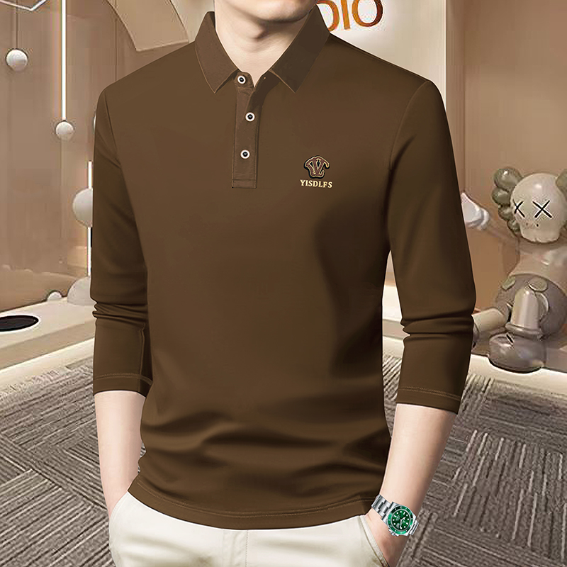 polo衫 商务休闲宽松纯色大码 男士 新款 t恤上衣男 2025秋季 罗蒙长袖