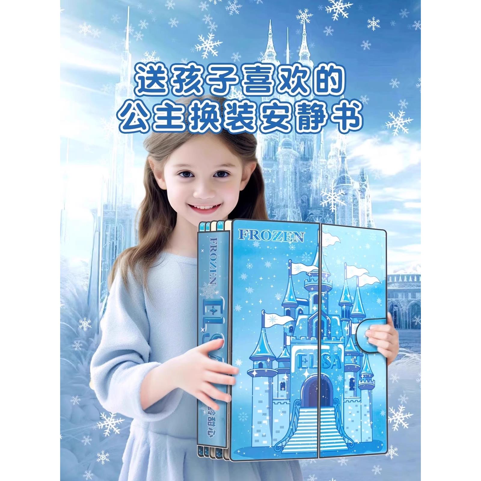 爱莎安静书新款 贴纸儿童手工diy玩具 女孩免裁剪艾莎公主小屋换装
