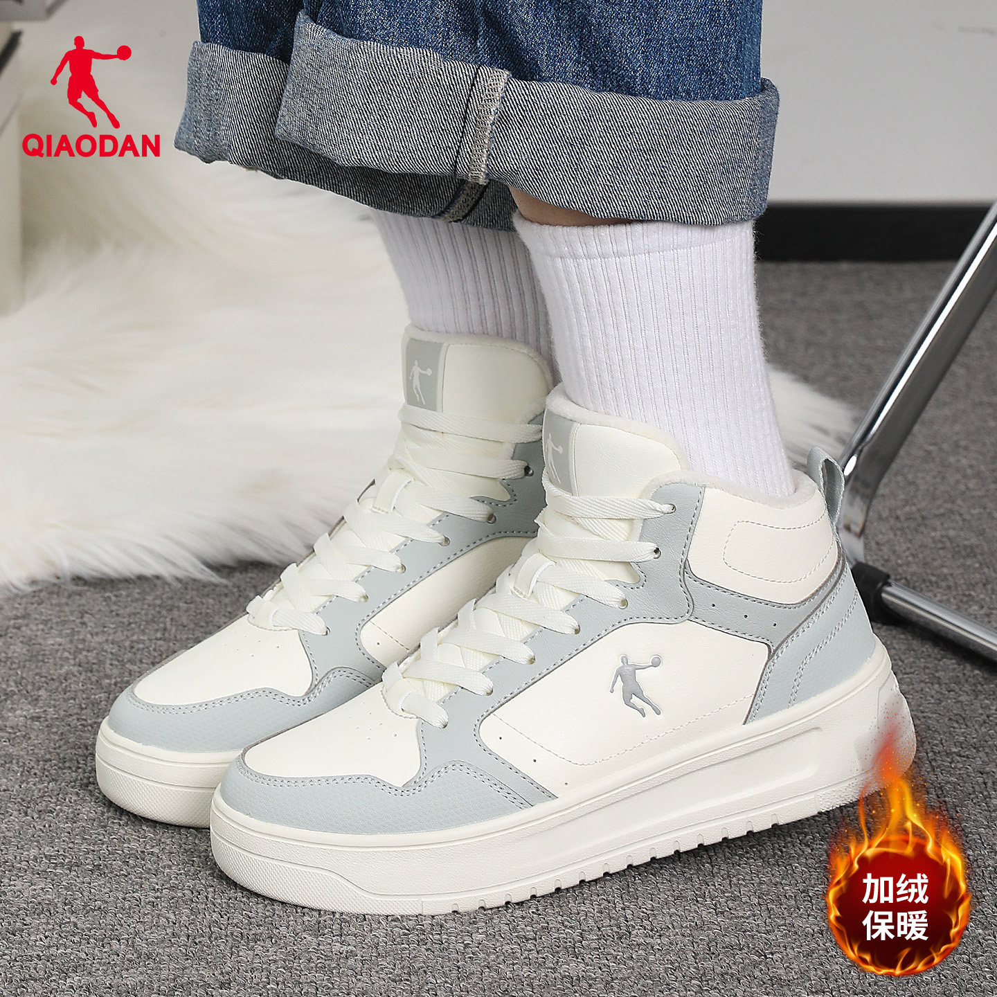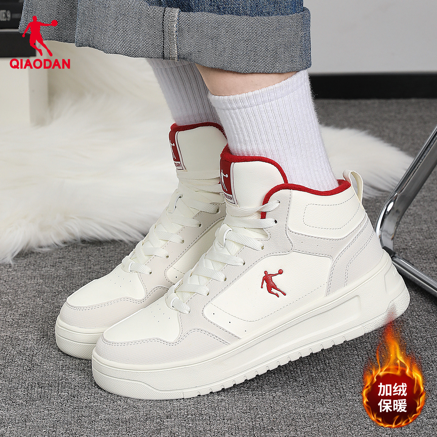 秋冬季 棉鞋 加绒女鞋 二棉鞋 乔丹高帮鞋 粉色厚底运动鞋 子女2025新款