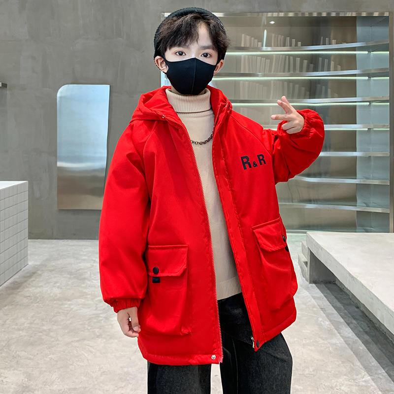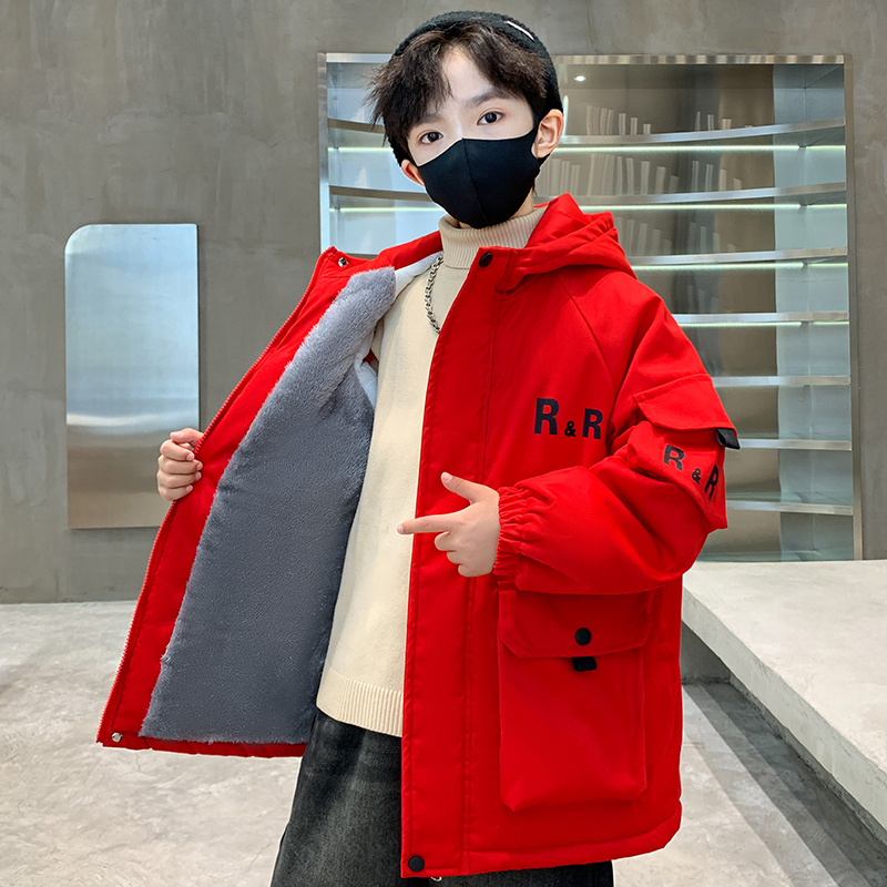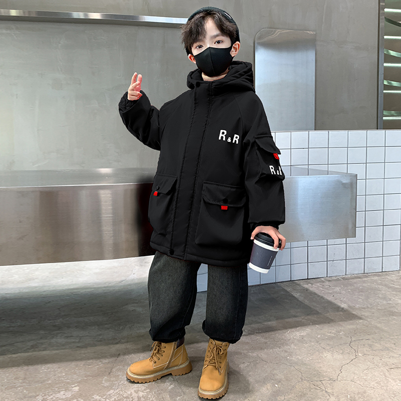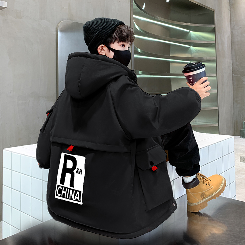 快鱼连帽短款 加厚保暖外套显瘦休闲印花棉衣 厚棉服男2025年冬新款