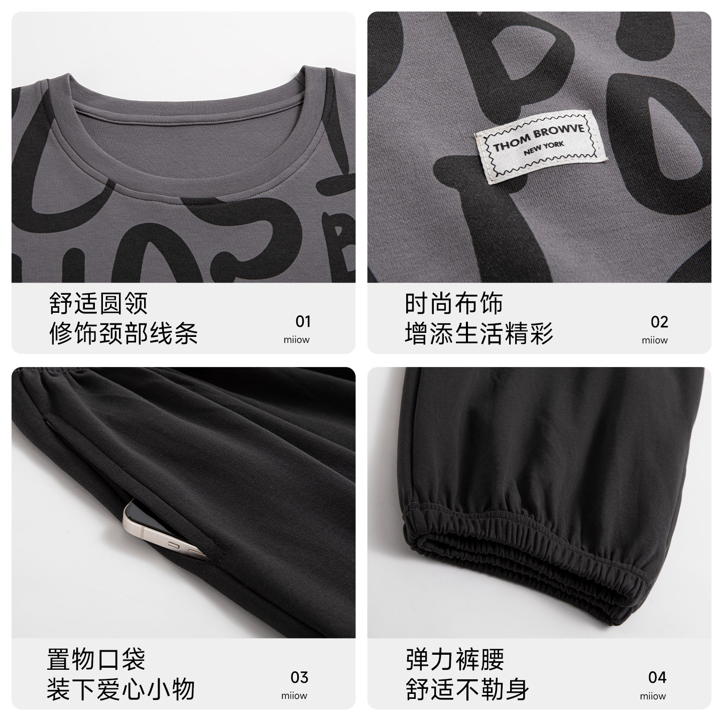 简约全棉高级感可外穿圆领家居服套装 春秋款 睡衣男士 猫人纯棉长袖
