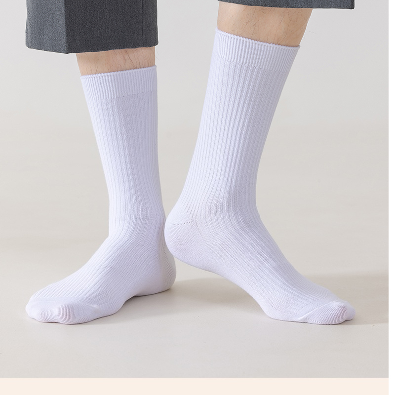 白色袜子男士 纯色短筒袜春秋长筒袜 新疆棉运动防臭吸汗中筒袜夏季