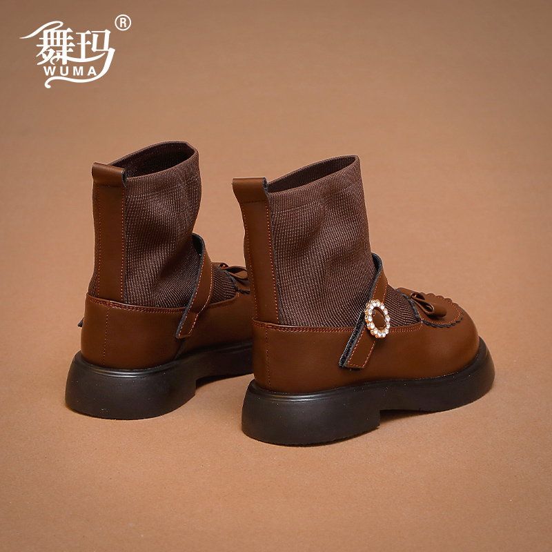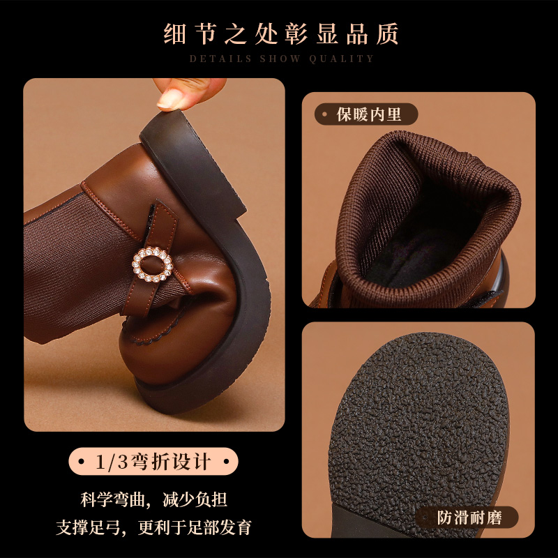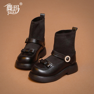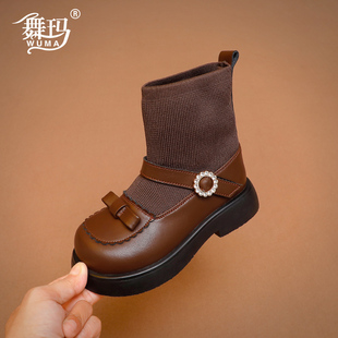 女宝宝加绒保暖短筒二棉靴子 冬季 舞玛女童鞋 子儿童袜口靴2025新款