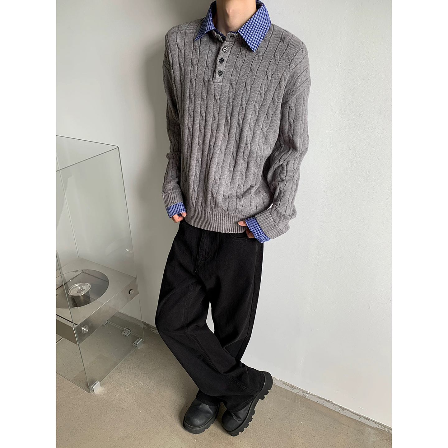 Navigare意大利小帆船牛仔翻领假两件毛衣女士休闲针织衫 纯羊毛