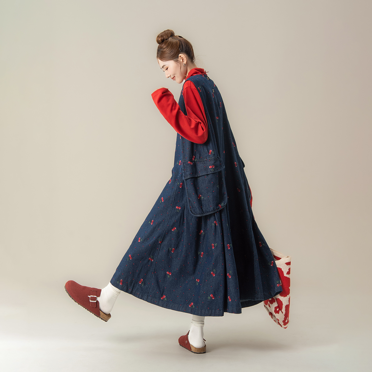 Navigare意大利小帆船休闲通勤风牛仔连衣裙女士精梳棉收腰长裙子